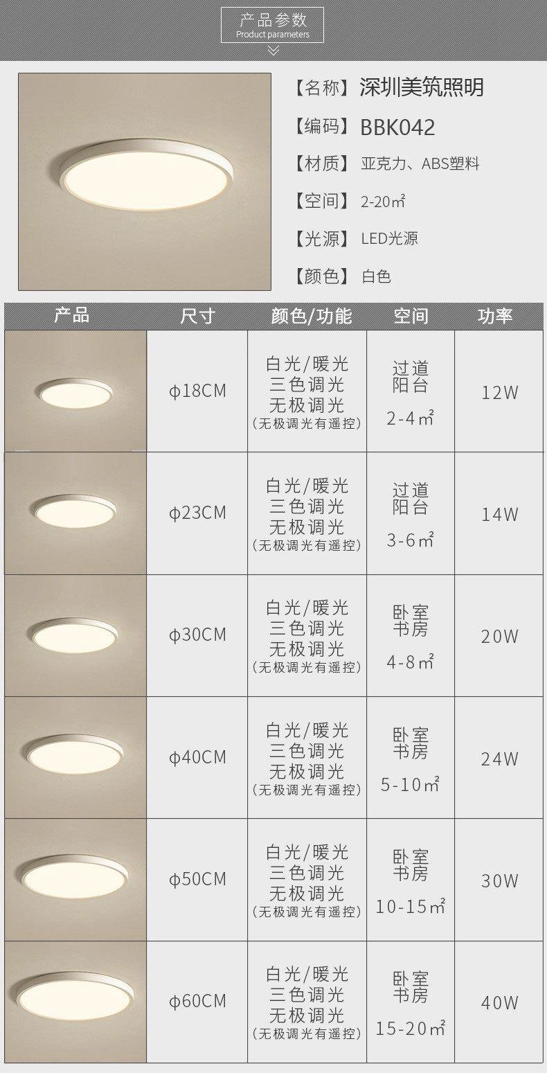 Diameter 18cm-white light, Diameter 18cm-warm light, 23cm diameter-white light, Diameter 23cm-warm light, Diam...