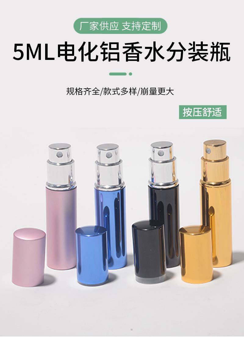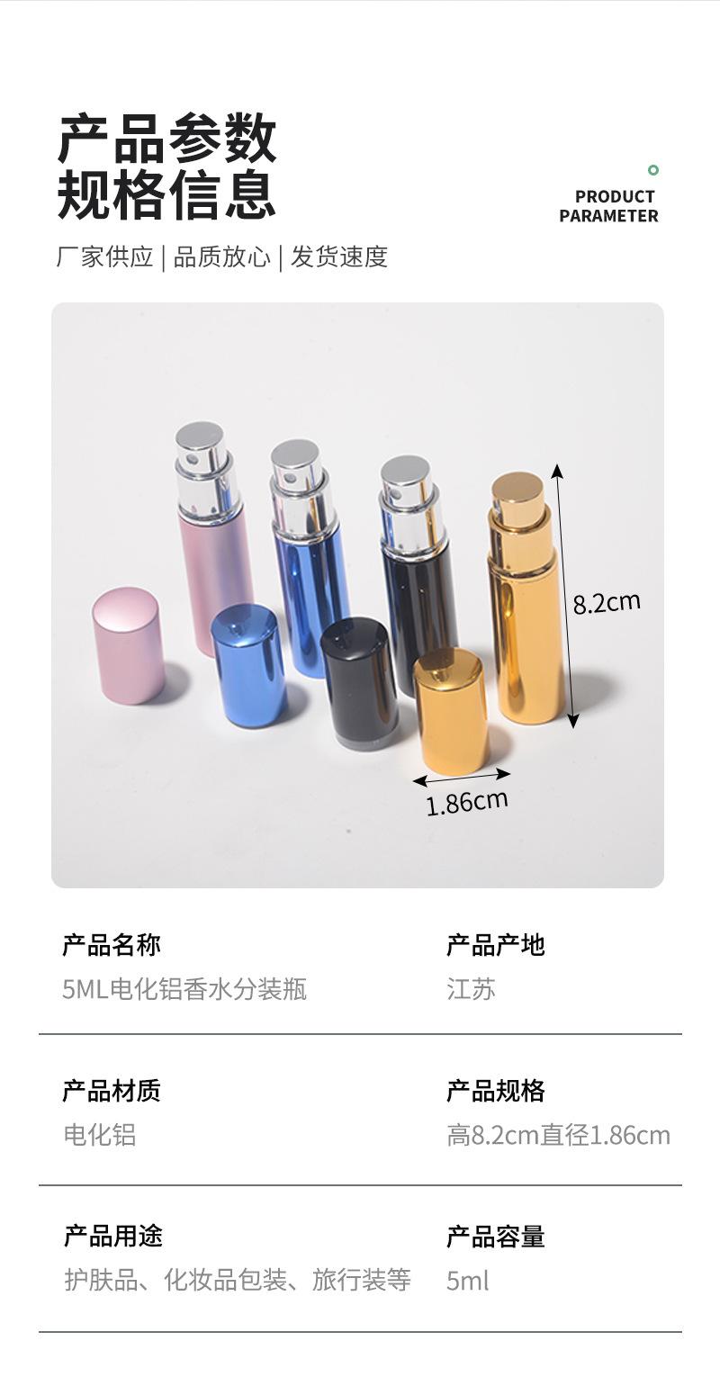 Frasco de Perfume de Alumínio Eletroquímico de 5ml, Frasco Spray para Loção com Fundo Totalmente Fechado, Frasco Spray de Alumínio Eletroquímico