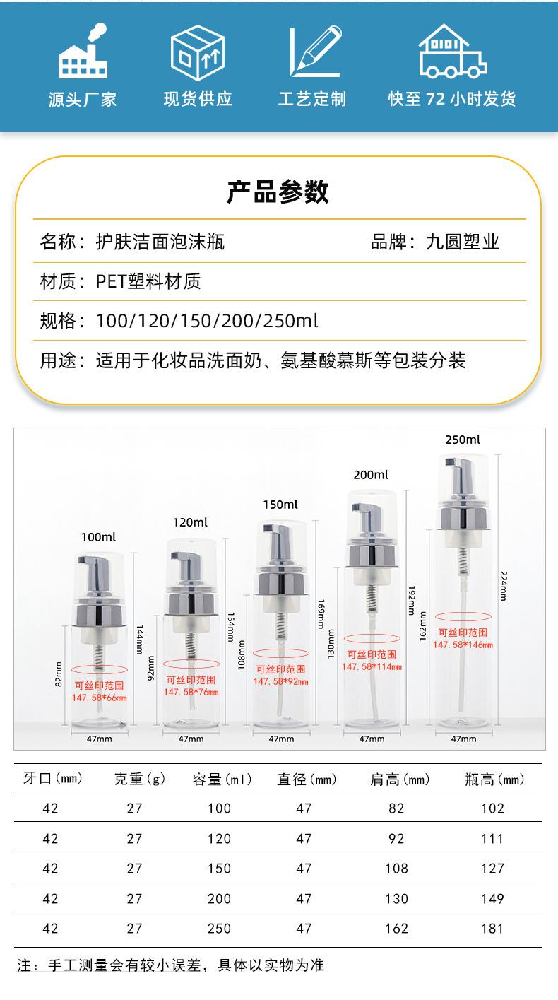 Frasco de espuma de limpeza localizada frasco de espuma 100/120/150/200/250ml frasco de pasta de dente de mousse infantil