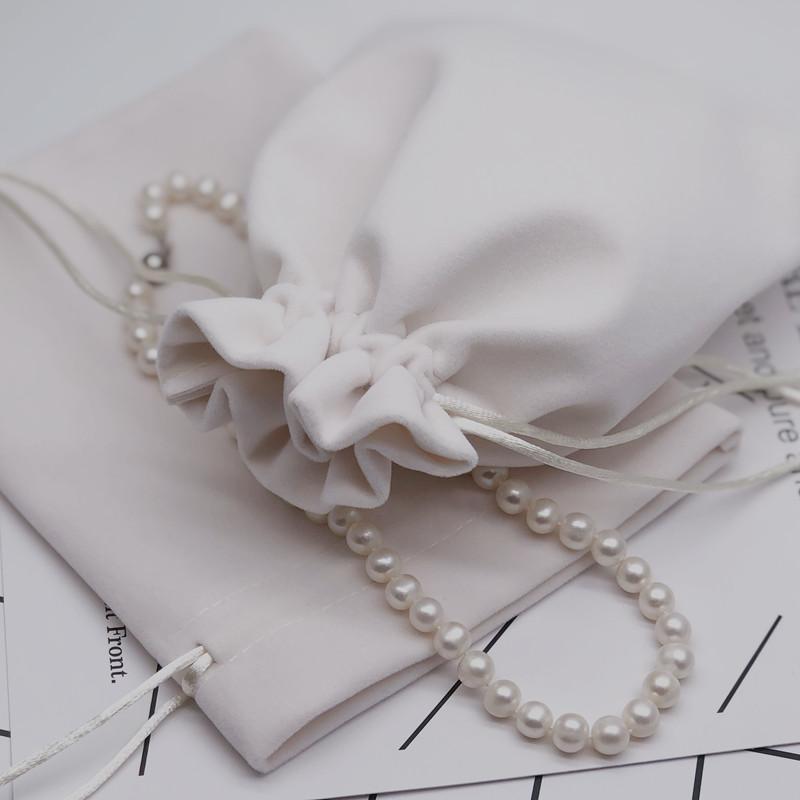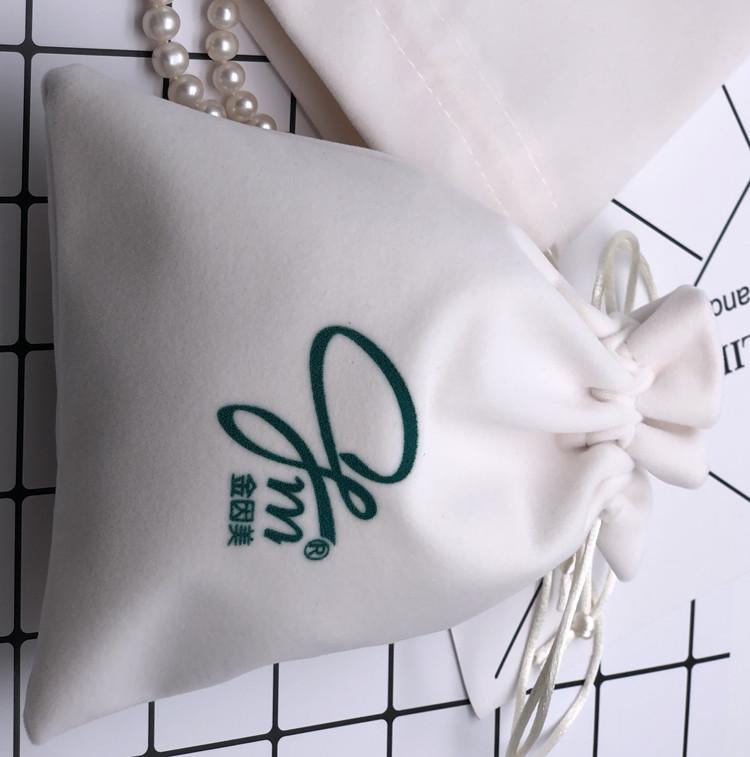 Em estoque saco de presente de flanela de flanela branca cremosa armazenamento cosmético saco de veludo à prova de poeira para impressão LOGO