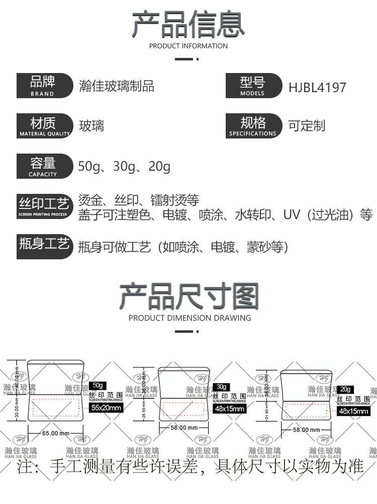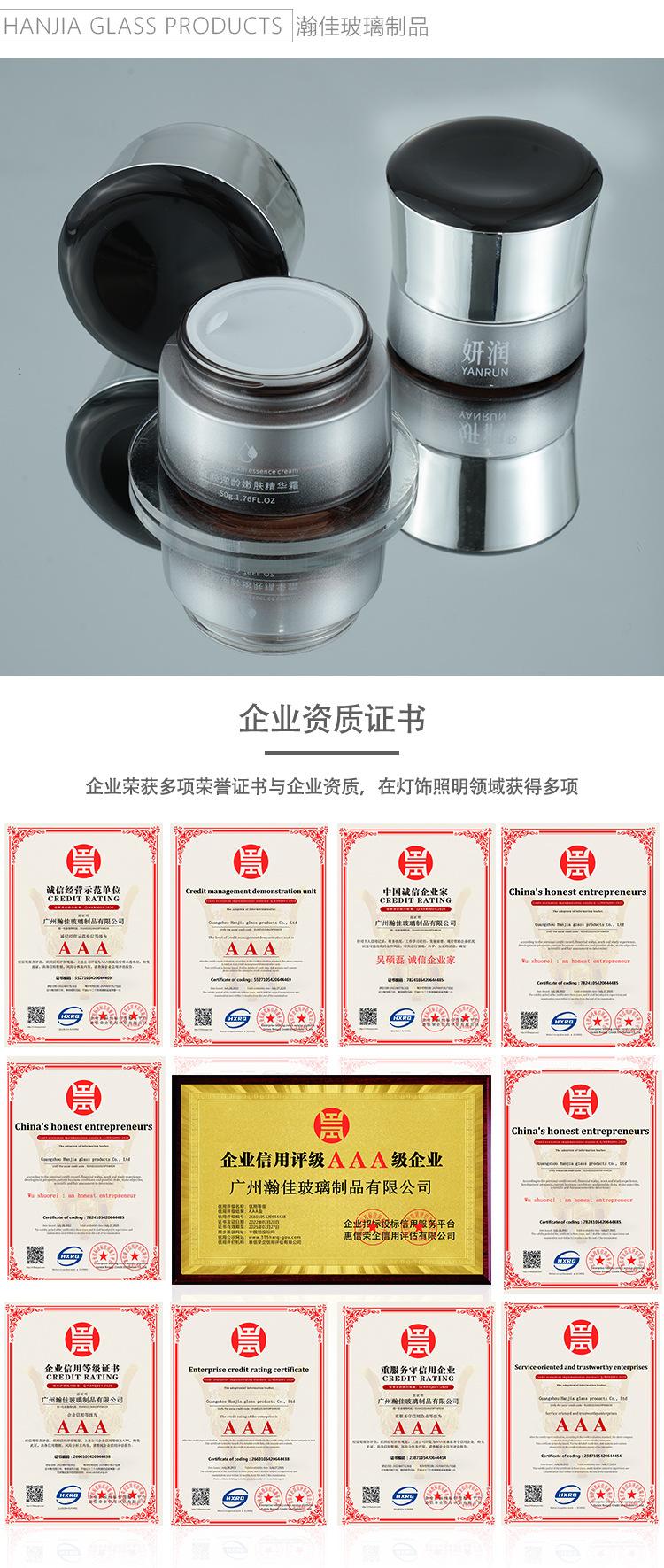 Frasco de Creme, Embalagem de Vidro Cosmético, Luxo Leve, Simples, Frasco de Creme Facial para Bebê de Paredes Grossas, Frasco de Creme para Olhos, Material de Embalagem para Produto de Cuidados com a Pele