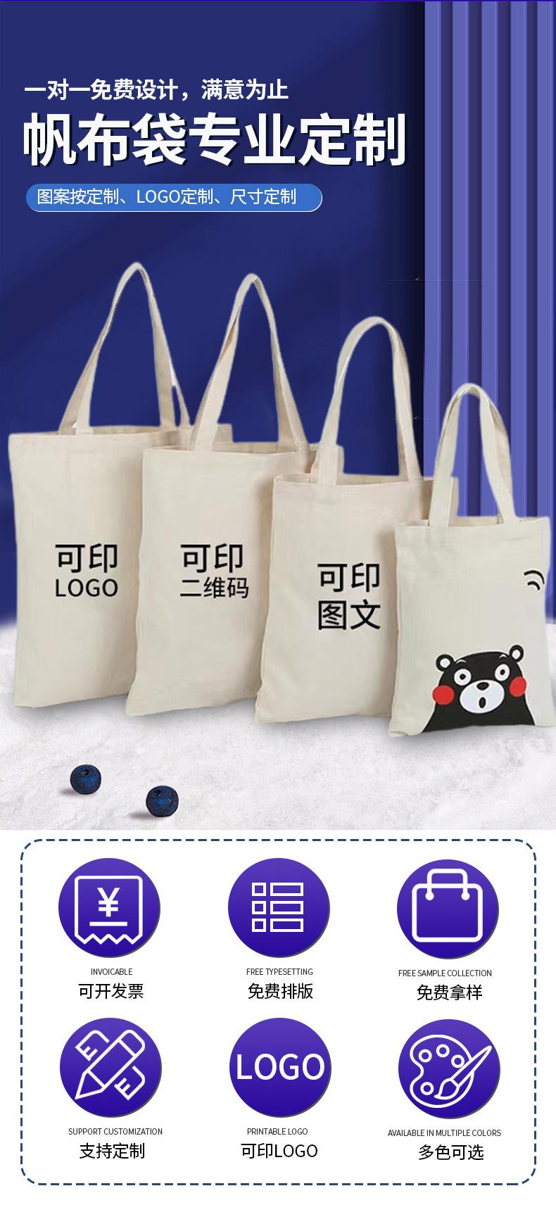 Bolsa de lona Padrão personalizado Logotipo Estudante Ombro Mão Presente Bolsa Bolsa de lona Bolsa de compras Bolsa de publicidade
