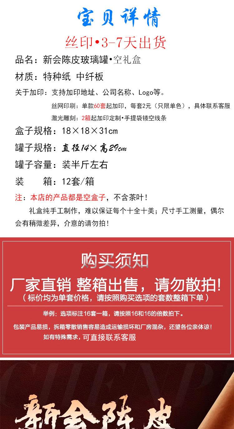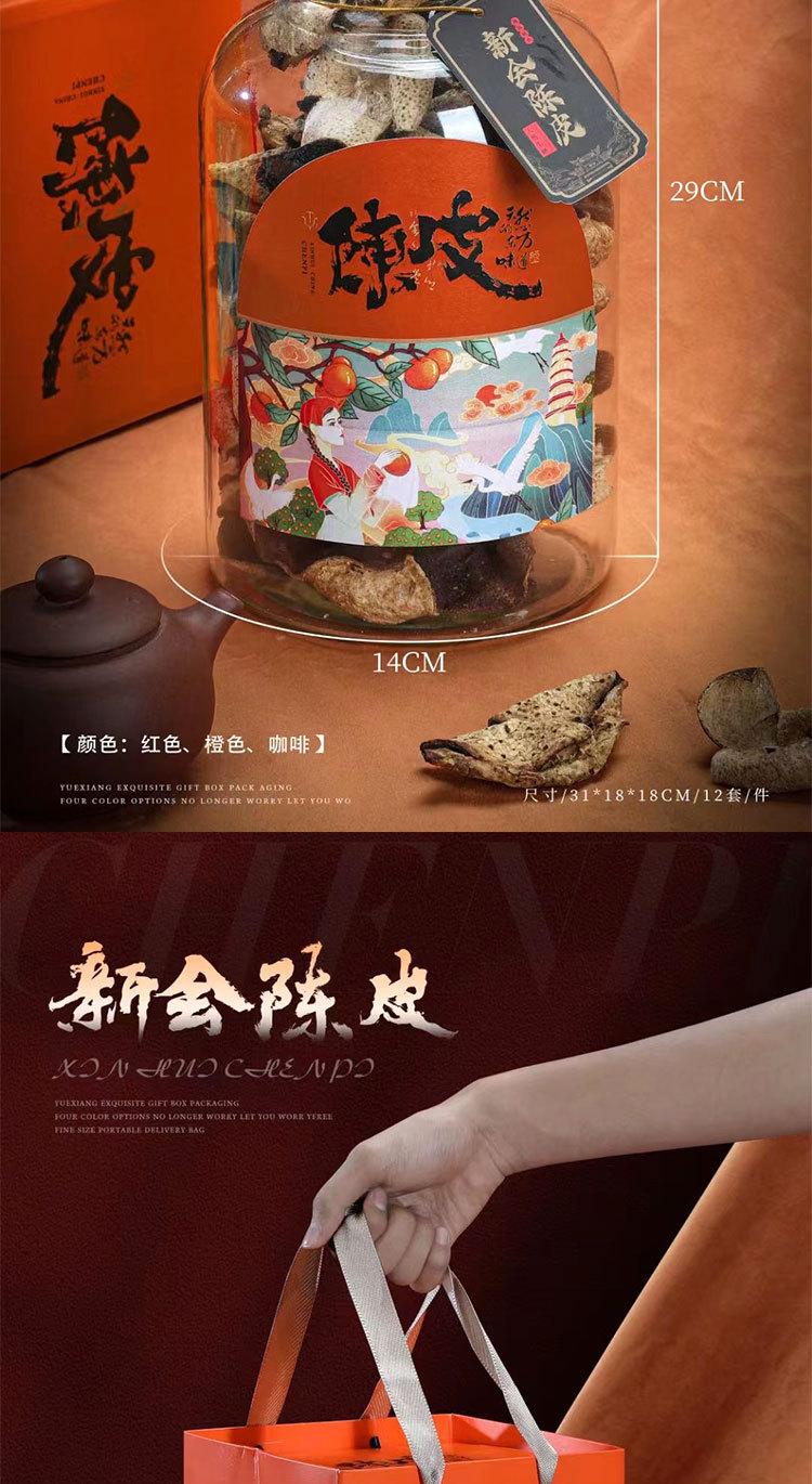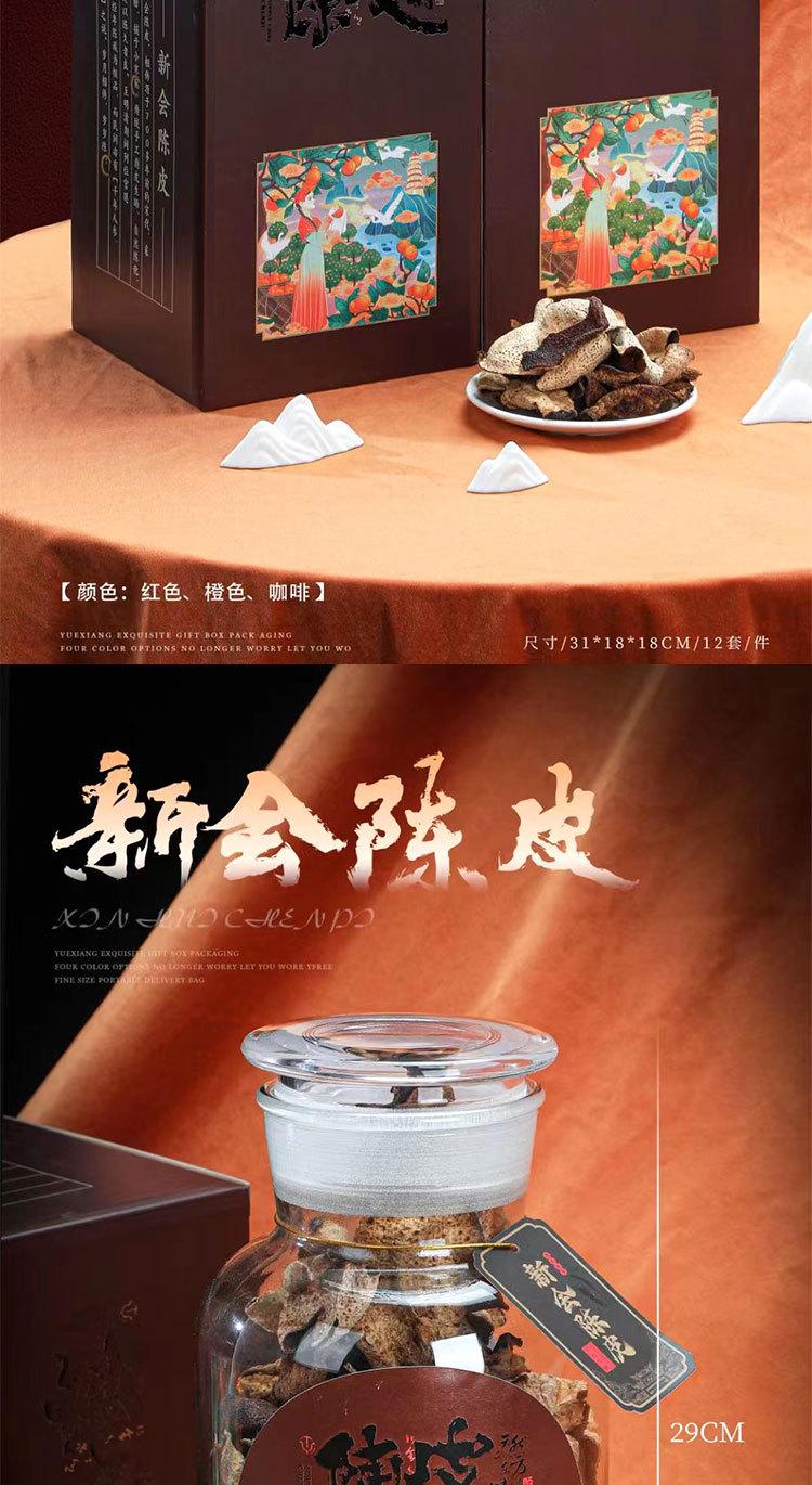 High-end Xinhui Tangerina Peel caixa de presente vazia 250g meia garrafa de vidro jin frasco selado caixa de presente de casca de tangerina seca caixa vazia