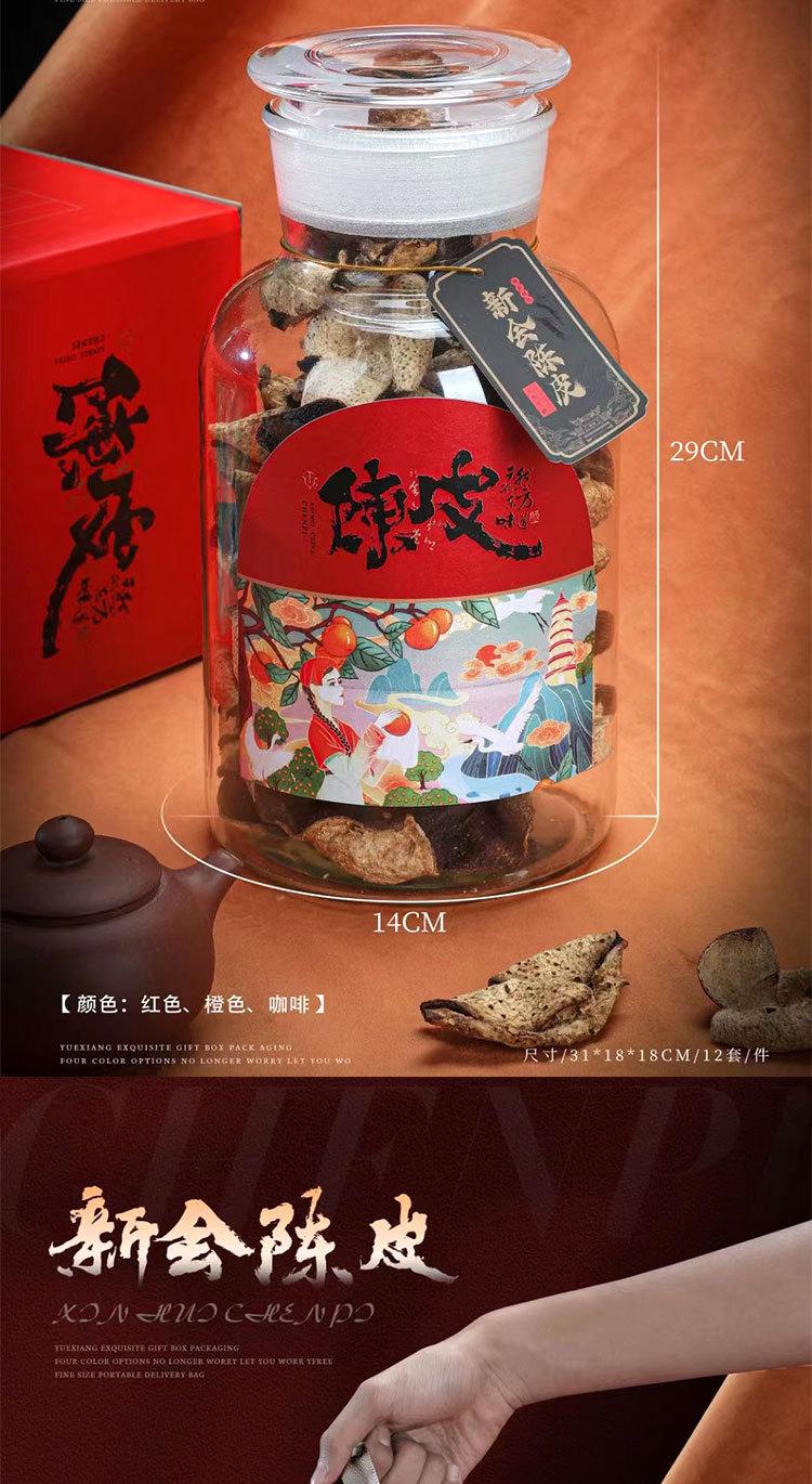 Xinhui Tangerine Peel glass jar red (please order 12 sets for the whole box)