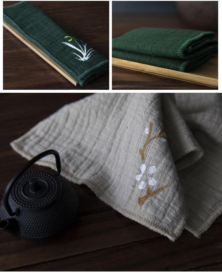 Impressão pintada à mão retro absorvente engrossado cânhamo quadrado toalha de chá pano kung fu acessórios cerimônia do chá limpo quadrado jogo de chá acessórios de chá chá
