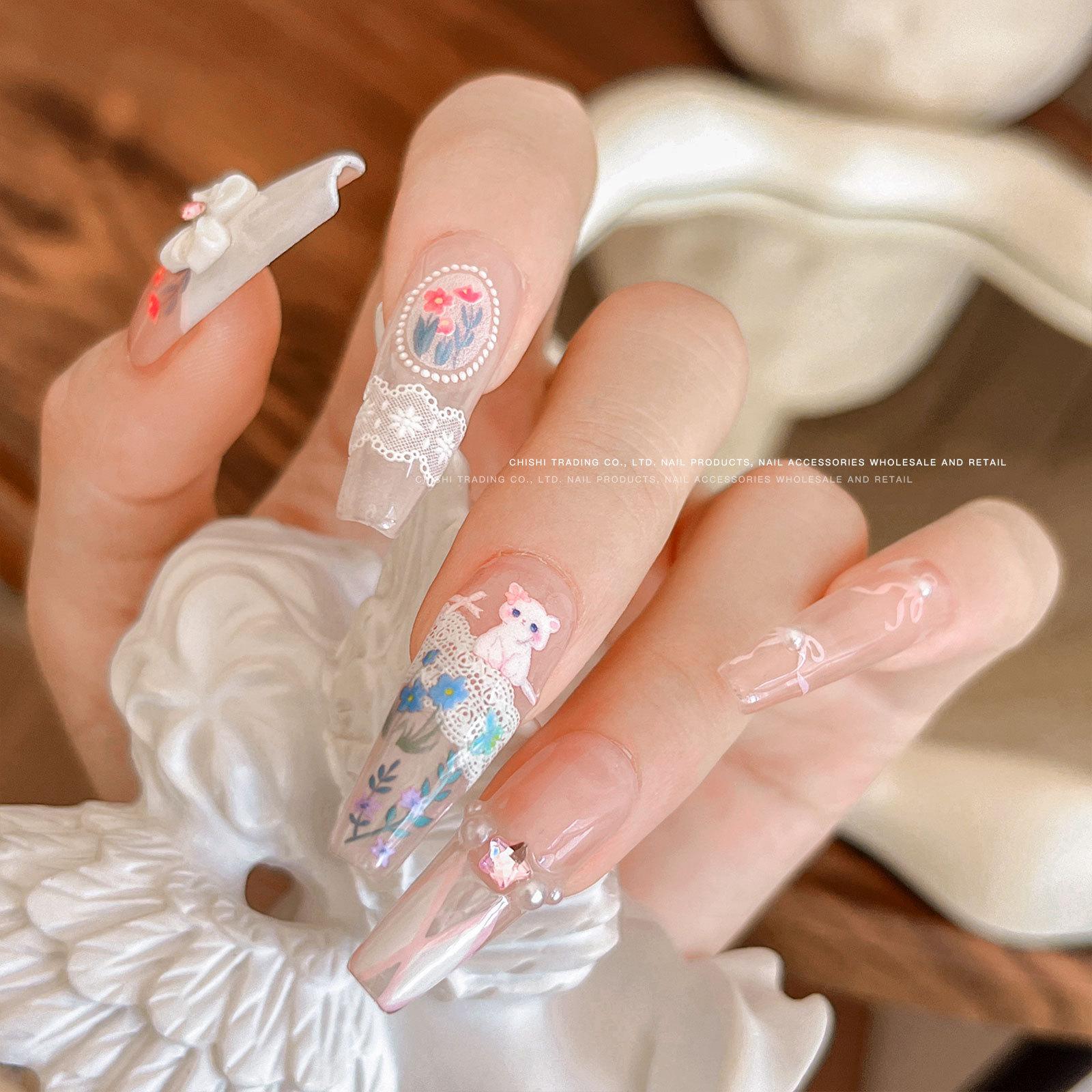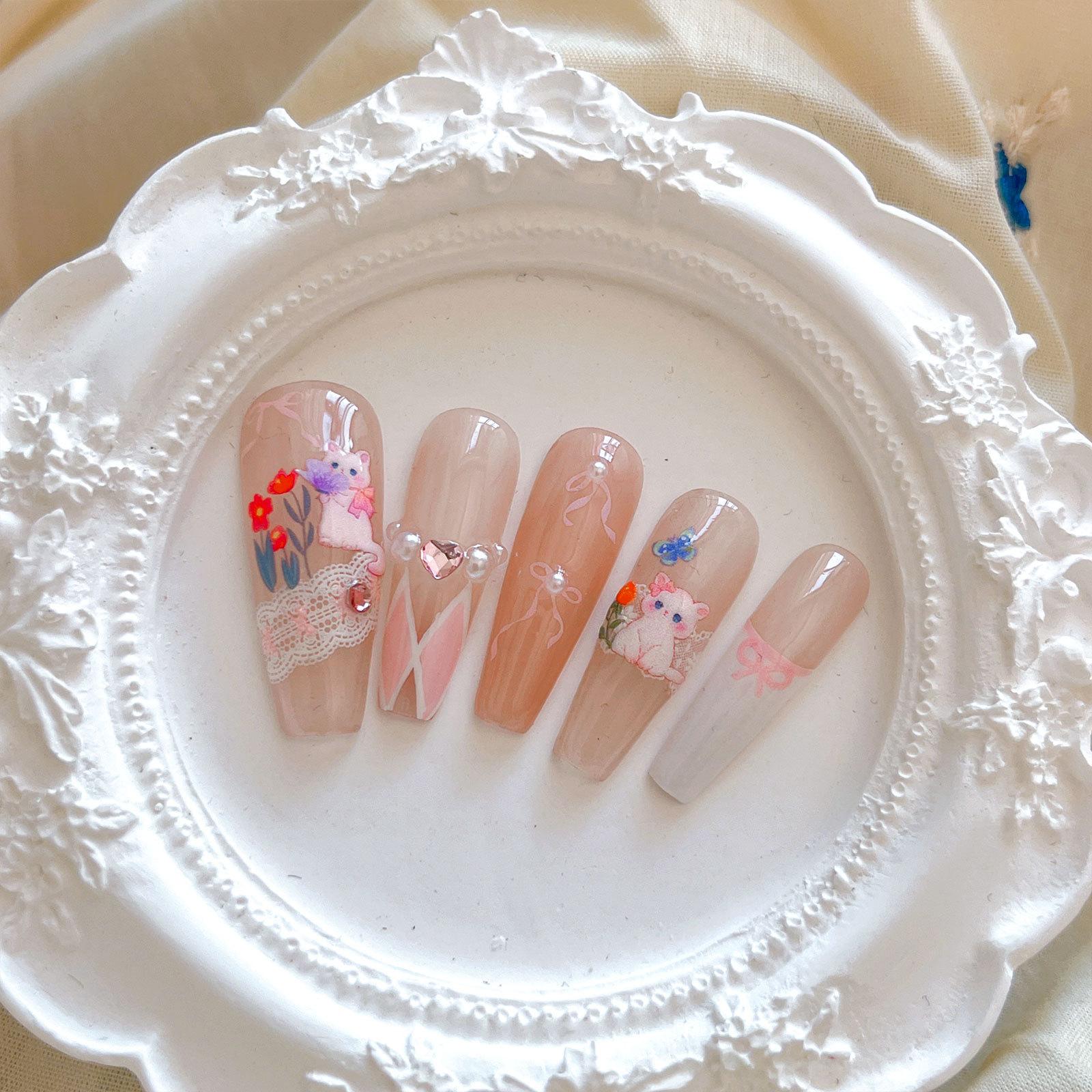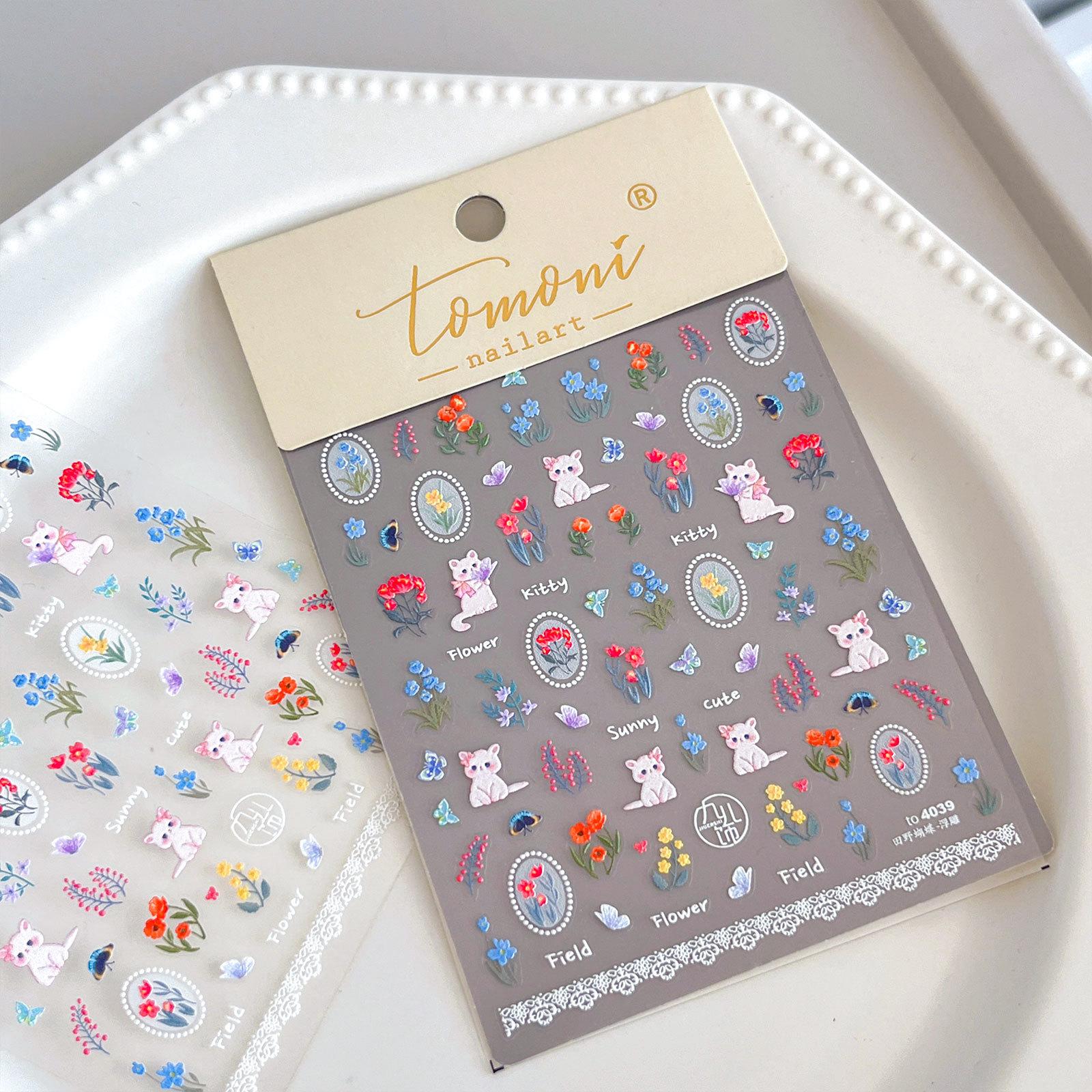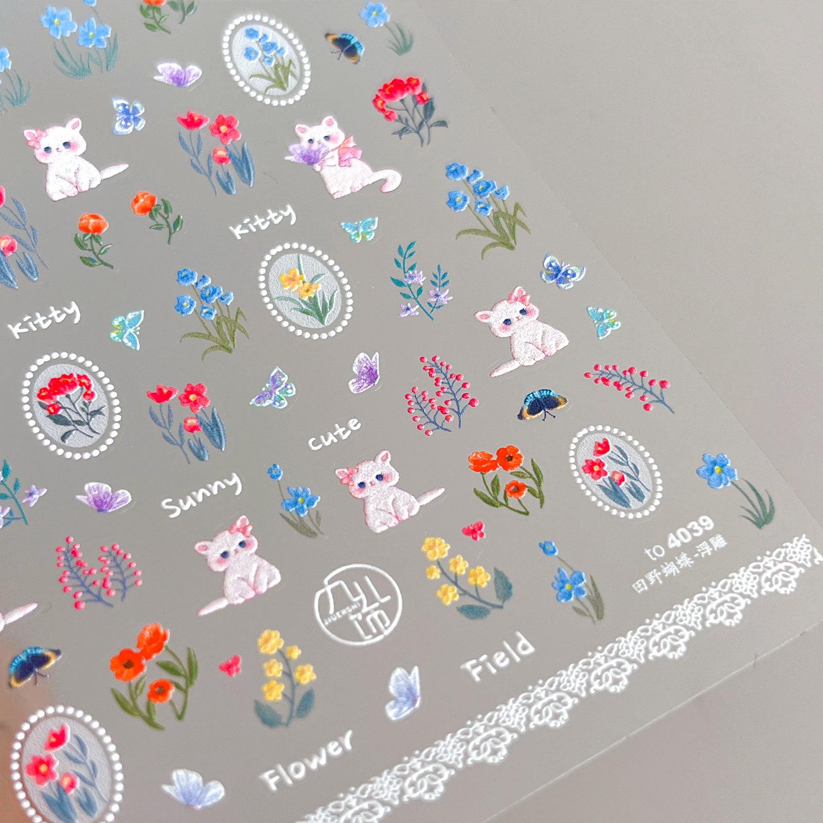 Adesivos de unha de gato borboleta de campo fofos pastorais adesivos de unha de alívio de flor de borboleta romântica atacado