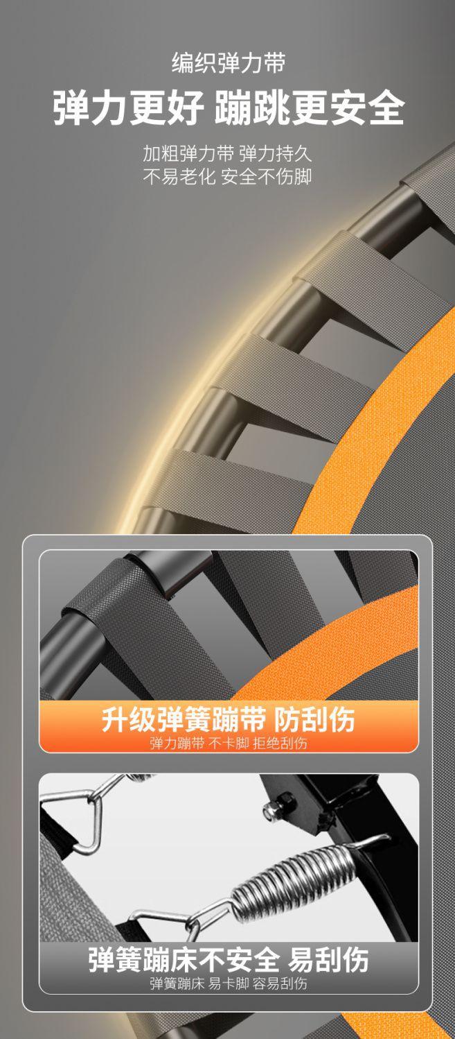 5. Informações do produto: Tamanho da embalagem: 78*48*10cm Peso bruto: 7kg Peso líquido: 5,5kg Altura do solo: 23cm Diâmetro do trampolim: 101,6cm Diâmetro do pano do trampolim: 80cm