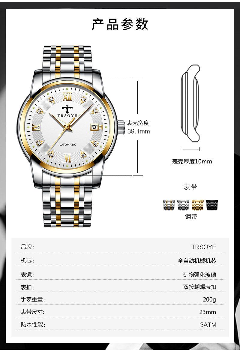 Relógio Mecânico Suíço Novo Totalmente Automático Relógio Masculino À Prova d'Água Luminoso Transmissão ao Vivo Comércio Exterior Transfronteiriço Dropshipping