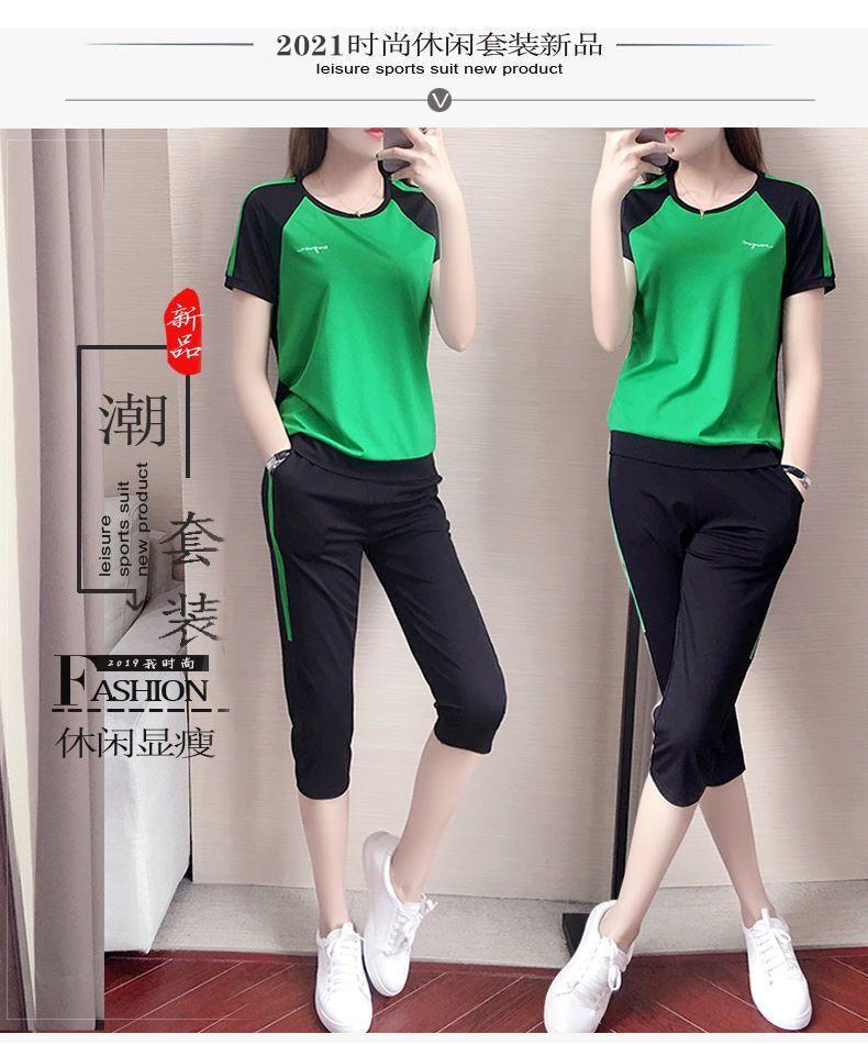 Terno Esportivo Casual Verão Feminino Nova Moda Solta Manga Curta Calças Capri Tamanho Grande Conjunto de Duas Peças
