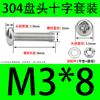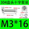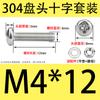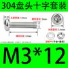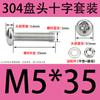 304 Aço Inoxidável Cruz Cruz Cabeça Redonda Parafuso Porca terno Daquan Pan Cabeça Redonda Parafuso M3M4M5M6M8