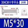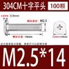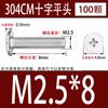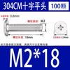 Parafuso de cabeça chata de aço inoxidável 304 Parafuso Phillips cabeça chata grande M2M2.5M3M4M5M6
