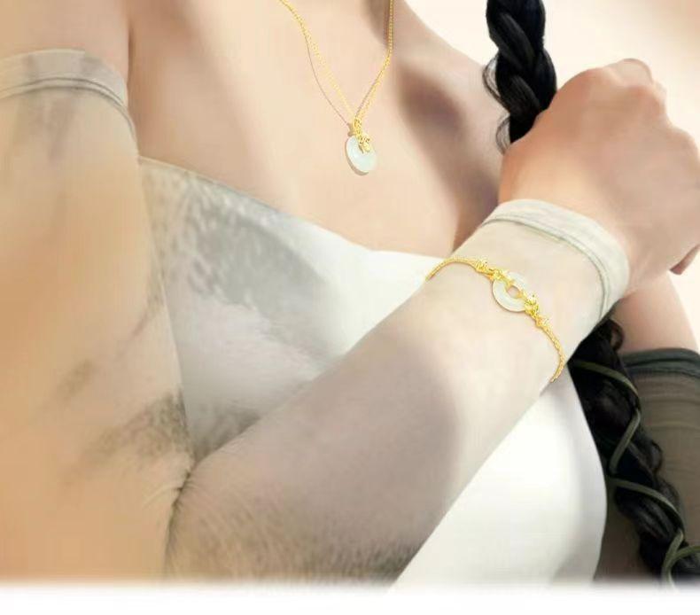 Fan Qi Spike Ping An Colar de fivela Nicho feminino Design avançado Corrente de clavícula de jade Hetian para presente de dia das mães
