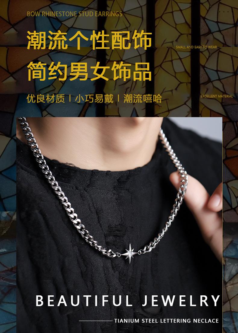 Compre Bamang Star Colar Masculino Simples All-match Titanium Steel Cuban Chain Mulheres Não Desbotamento Luz Luxo Hip Hop Acessórios Venda Quente Jóias no atacado no Joom.pro
