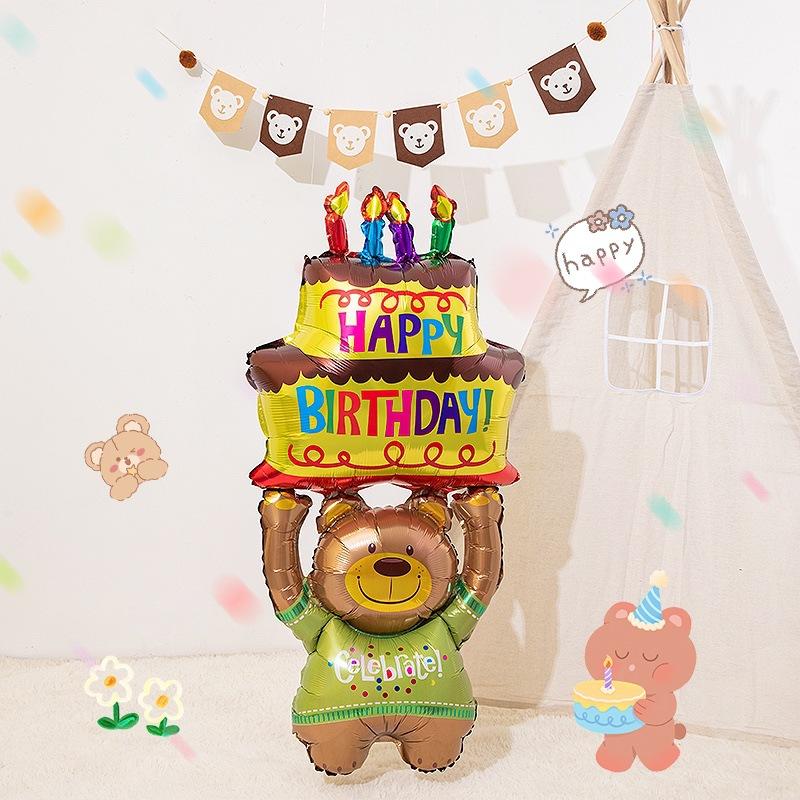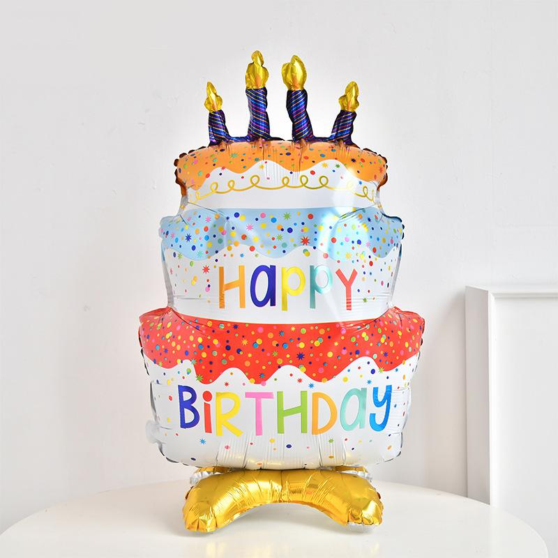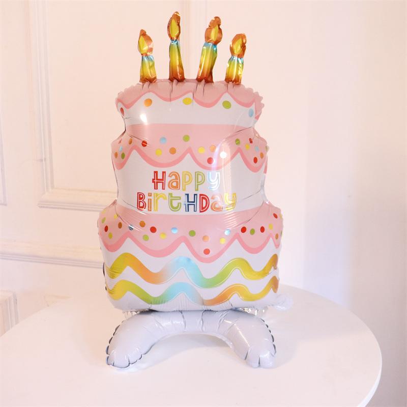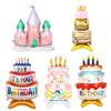Cena de festa de aniversário do bebê vestir layout tridimensional de três camadas de cor bolo de alumínio filme balão decoração base Castelo
