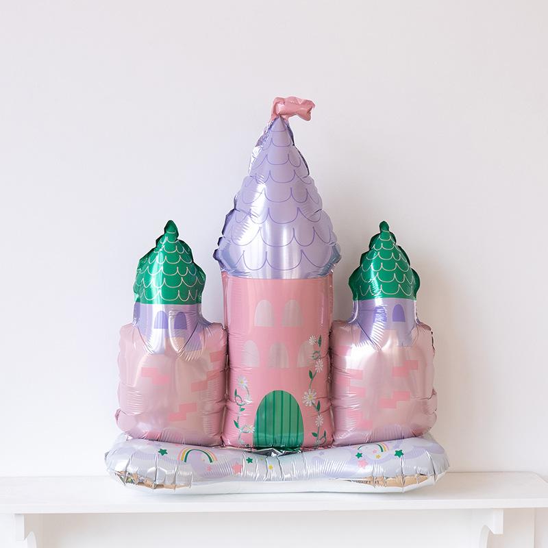 Compre Cena de festa de aniversário do bebê vestir layout tridimensional de três camadas de cor bolo de alumínio filme balão decoração base Castelo no atacado no Joom.pro