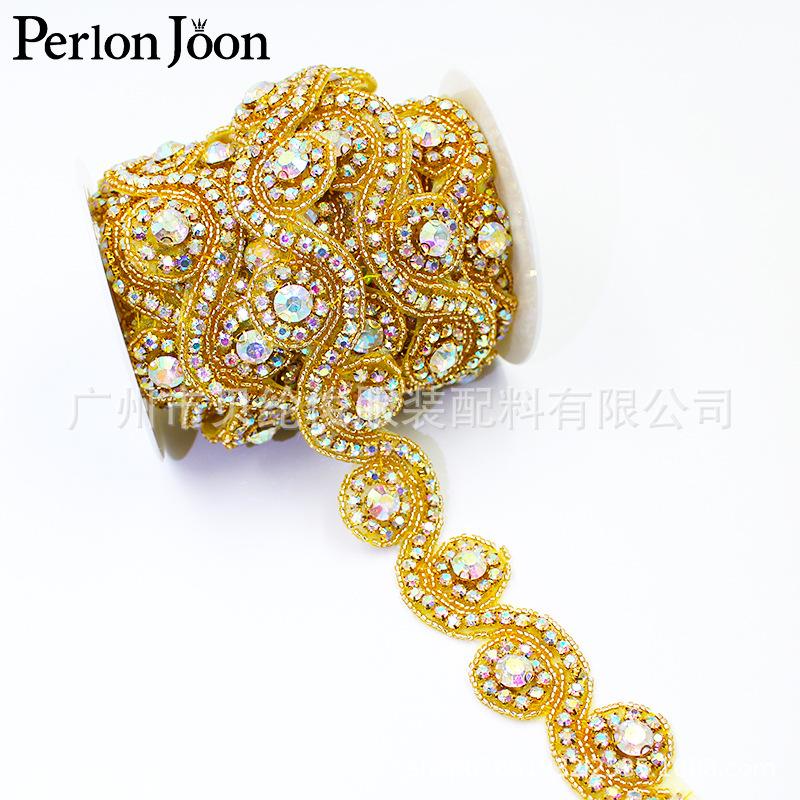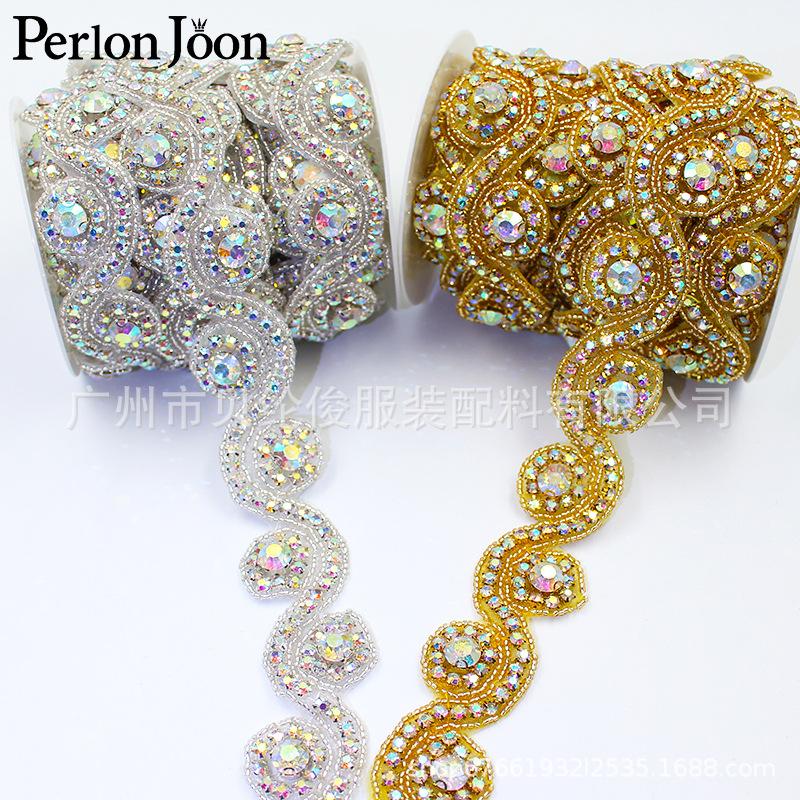 Bolsa decorativa de flores para roupas, bolsa de vestido decorativa de duas cores AB dourada e prateada com strass feita à mão, acessórios decorativos para casamento