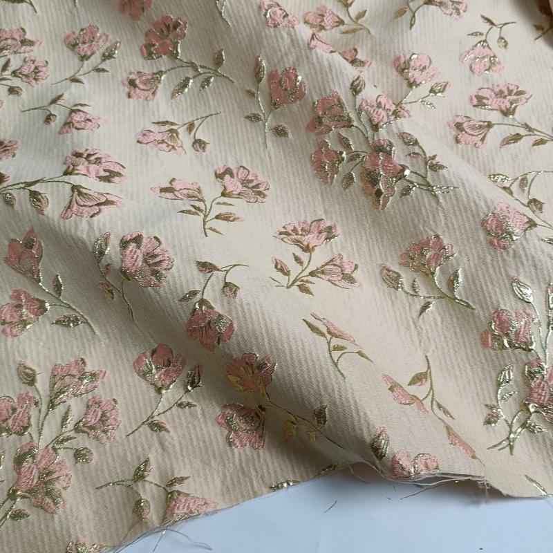 Brocado amarelo em relevo ouro flor de seda fios tingidos tecido jacquard casaco das mulheres terno vestido pano decorativo
