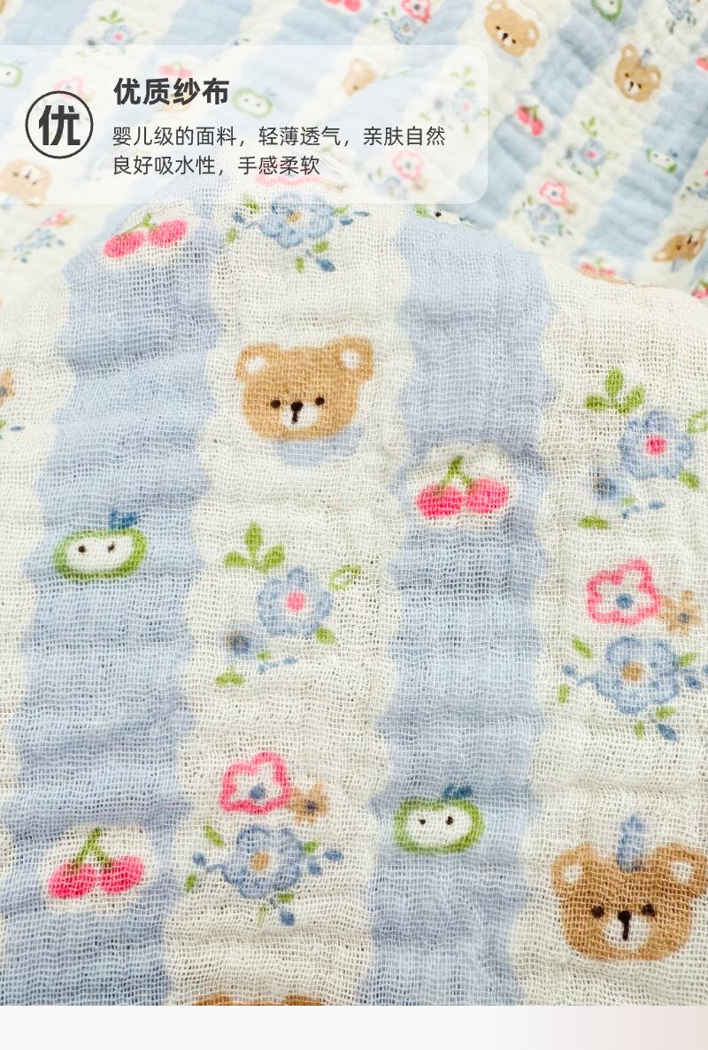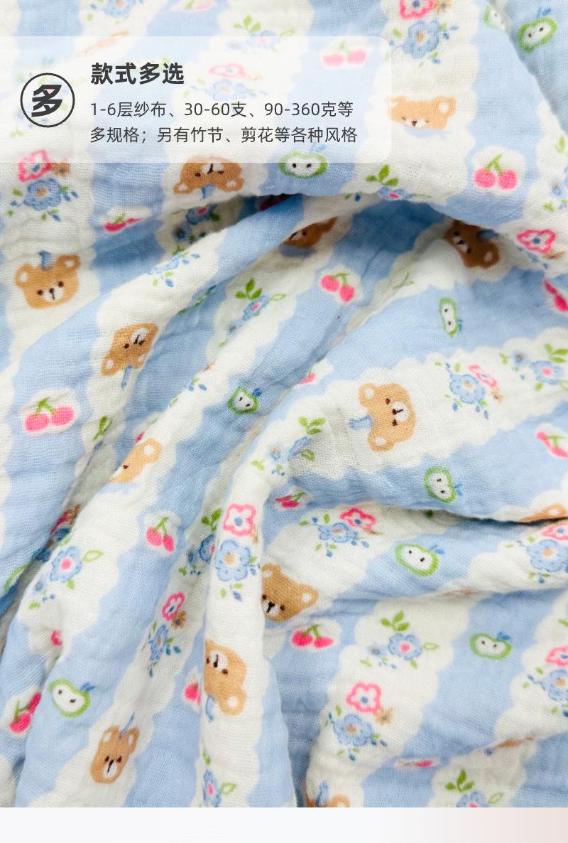 Tecido de gaze crepe de algodão com estampa de urso de orquídea com bolinhas estampadas, dupla camada, roupas de bebê de algodão para casa, toalha de saliva, superfície