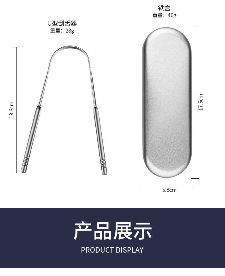 Em estoque raspador de língua com embalagem de aço inoxidável em forma de U limpador de raspador de língua para remover o mau hálito ferramentas de cuidados de limpeza oral
