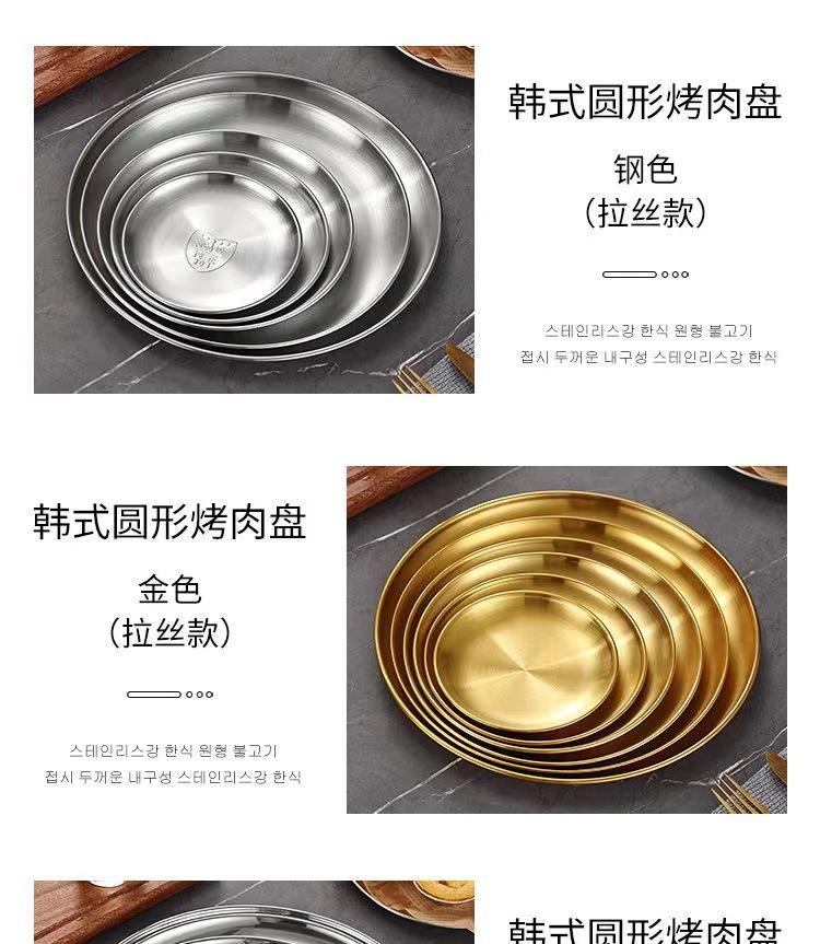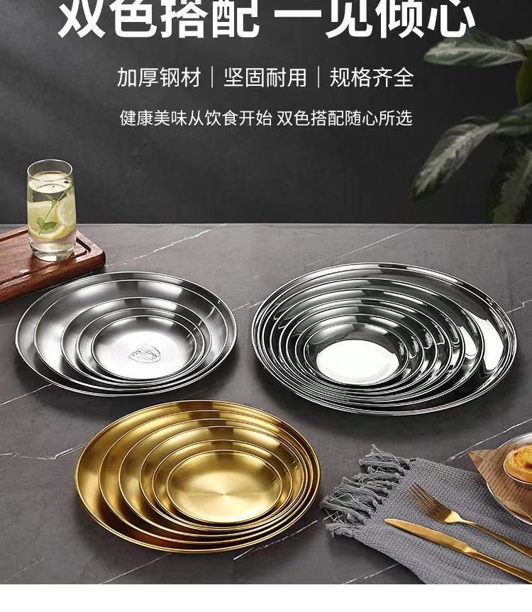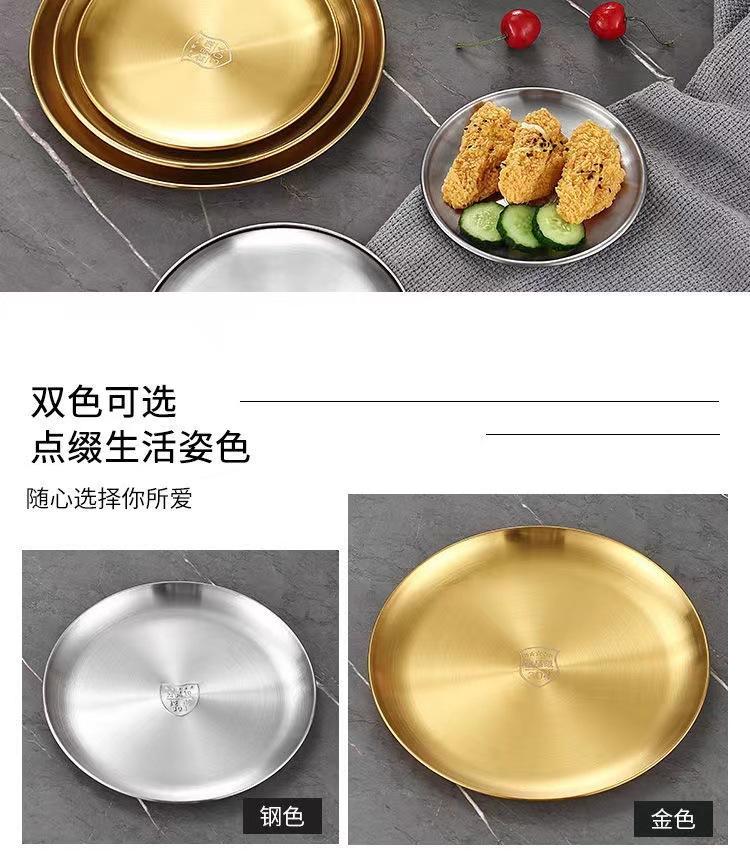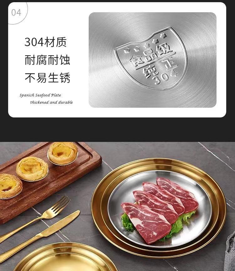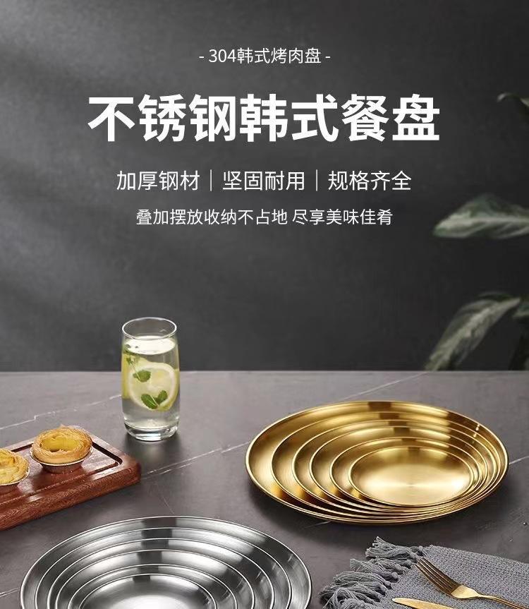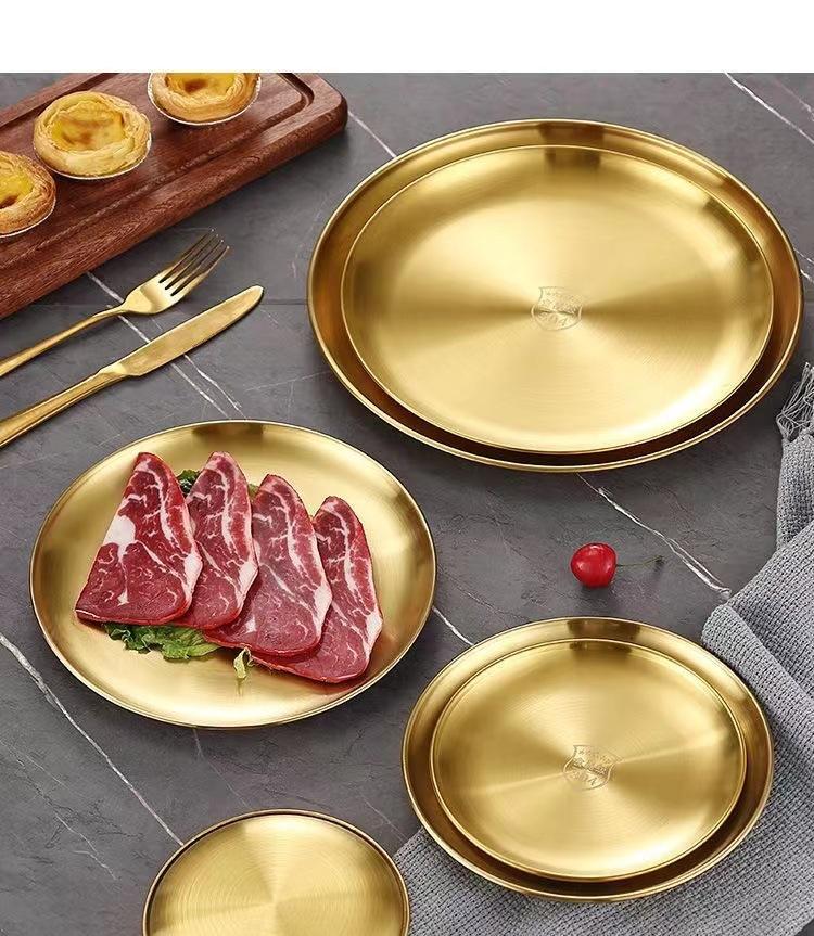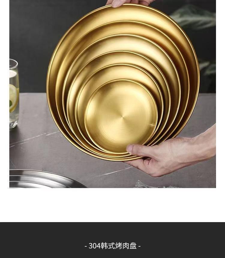 Estilo coreano Aço Inoxidável 304 Disco Dourado Bandeja de Fundo Plano Churrasqueira Restaurante Comercial Doméstico Prato de Osso de Prato Raso