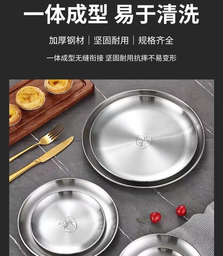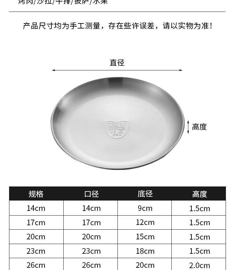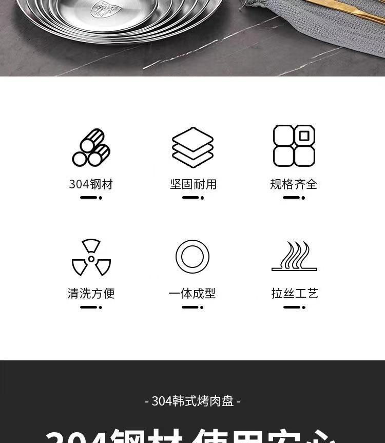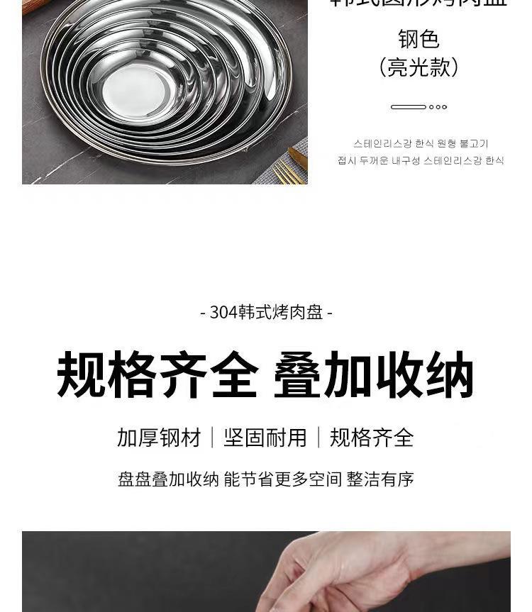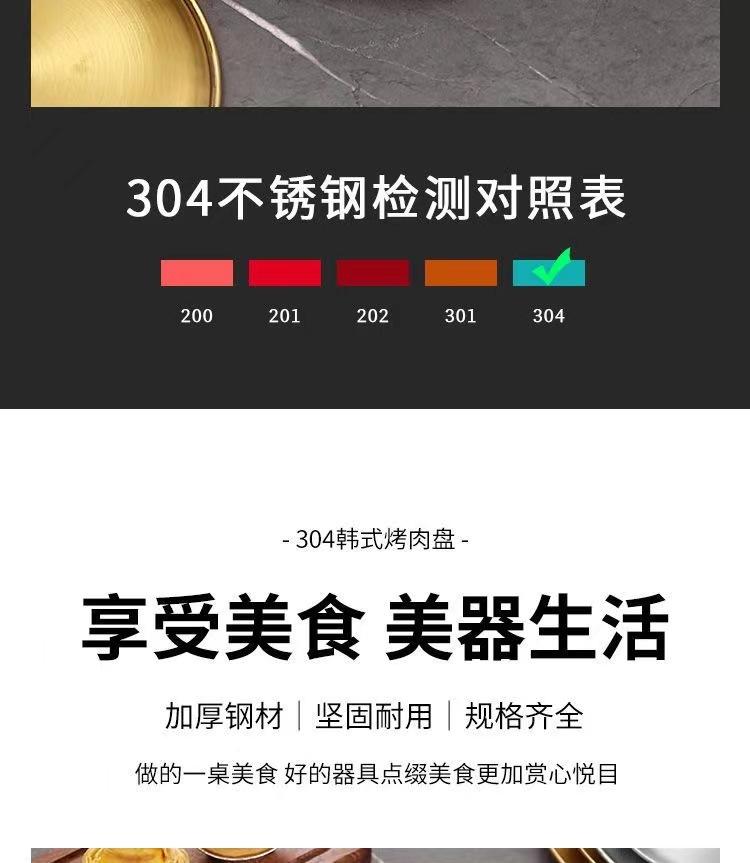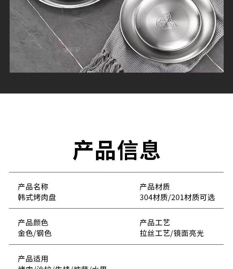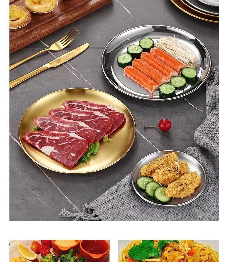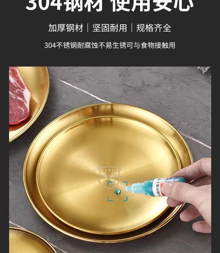 Estilo coreano Aço Inoxidável 304 Disco Dourado Bandeja de Fundo Plano Churrasqueira Restaurante Comercial Doméstico Prato de Osso de Prato Raso