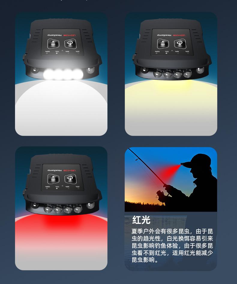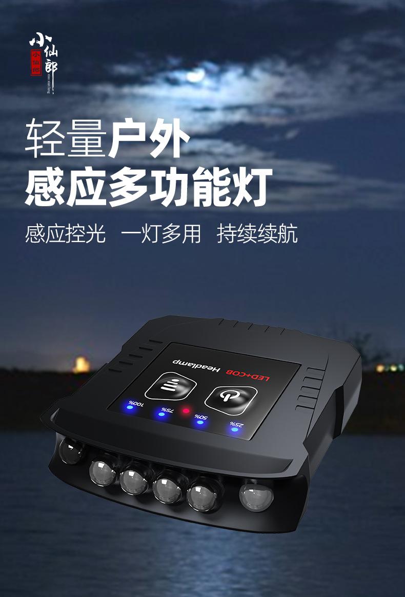 Luz de Pulso para Pesca Noturna, Luz de Mão para Pesca, Luz Led Inteligente de Indução para Pesca Selvagem, Super Brilhante para Exterior, Longa Duração da Bateria, Xiaoxianlang