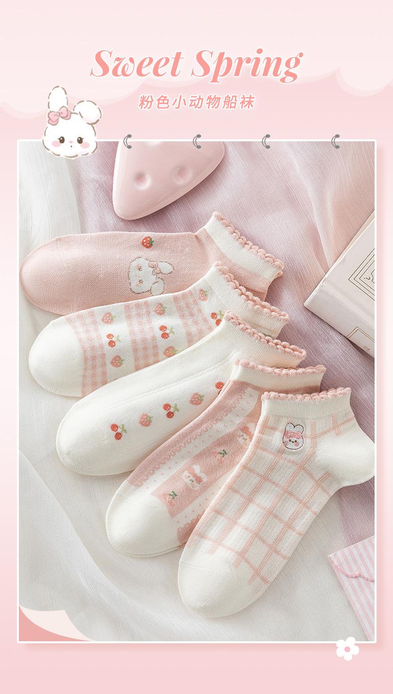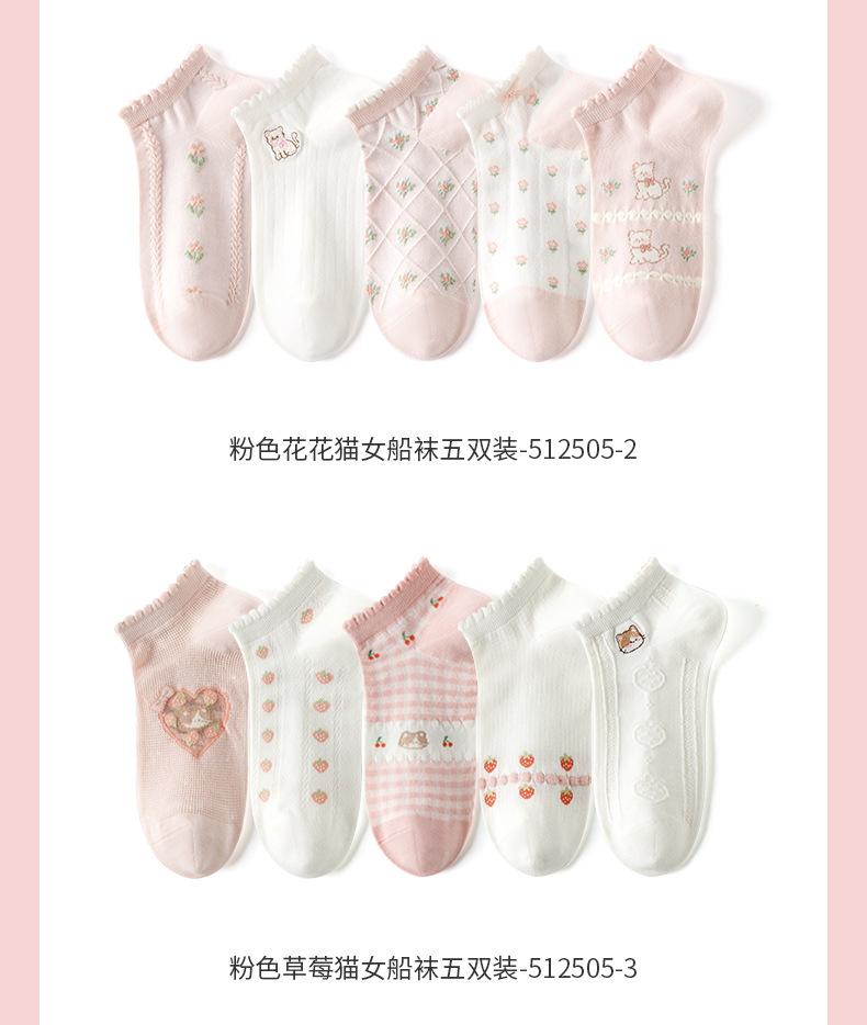 Meias de barco para primavera e verão, meias femininas estilo universitário, 5 pares, meias curtas finas para mulheres, meias de algodão femininas de boca rasa