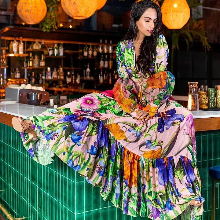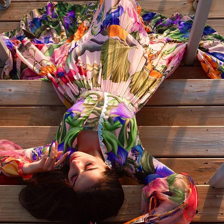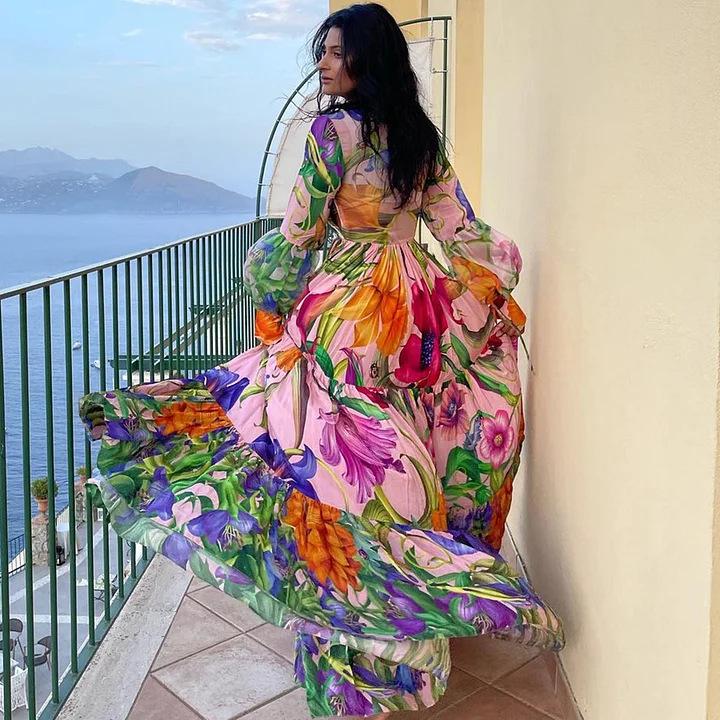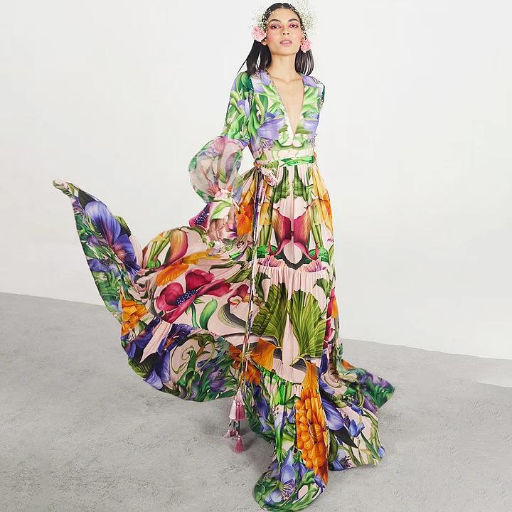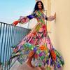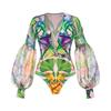 2024 Moda Praia Explosões Transfronteiriças Decote V Profundo Manga Longa Lanterna Feriado à Beira-Mar Estampado Fato de Banho Inteiro Fato Feminino 25153