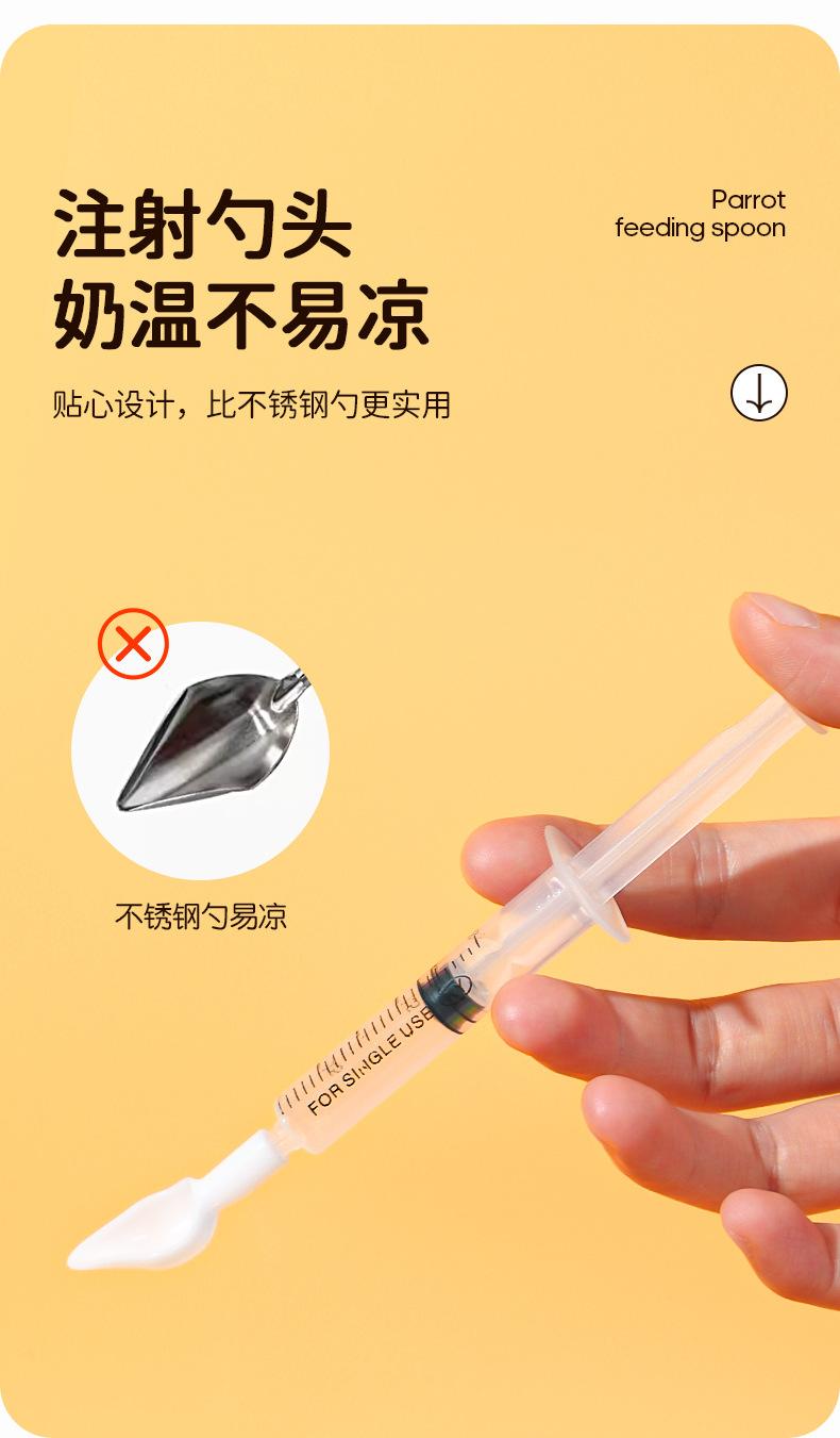 Filhotes de papagaio alimentando leite em pó, preparando leite em pó, pássaro pai, pequeno animal de estimação, alimentador de seringa de mão