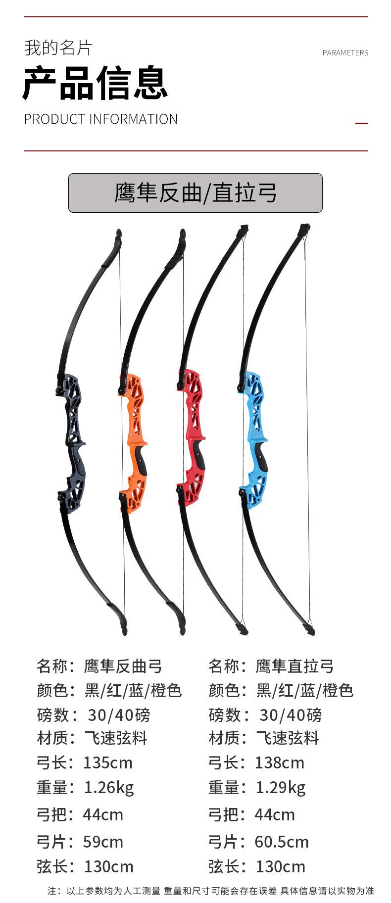 Black recurve bow 40 pounds, Red recurve bow 40 pounds, Blue recurve bow 40 pounds, Orange recurve bow 40 poun...