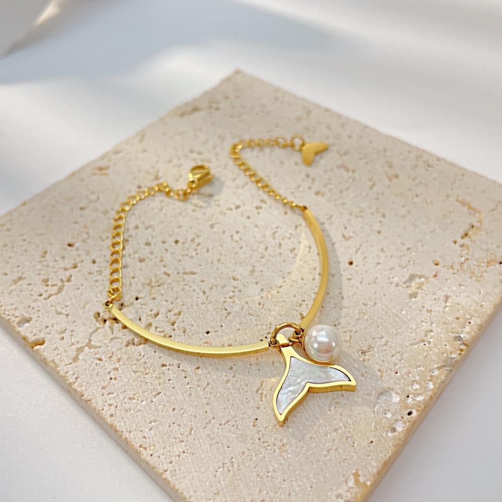 Joias OPK Coreia do Sul Verão Nova Cauda de Peixe Concha Joias Atacado Celebrante da Internet Moda Coringa Pulseira de Aço Inoxidável para Mulheres