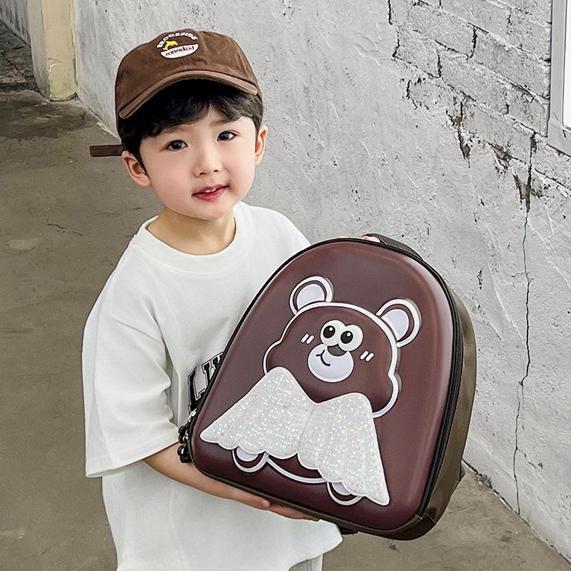 Novo urso dos desenhos animados saco infantil jardim de infância pequena classe classe média mochila meninos e meninas casca dura pequena mochila de comércio exterior