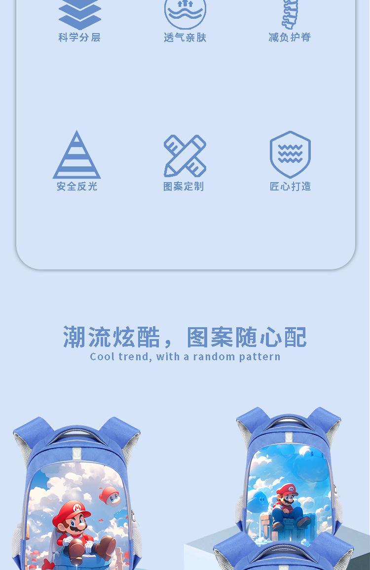 2023 Nova Mochila Mario Mochila Escolar Infantil Mochila Bonita Estudantes Masculinos e Femininos Bolsa de Redução de Peso na Moda Atacado