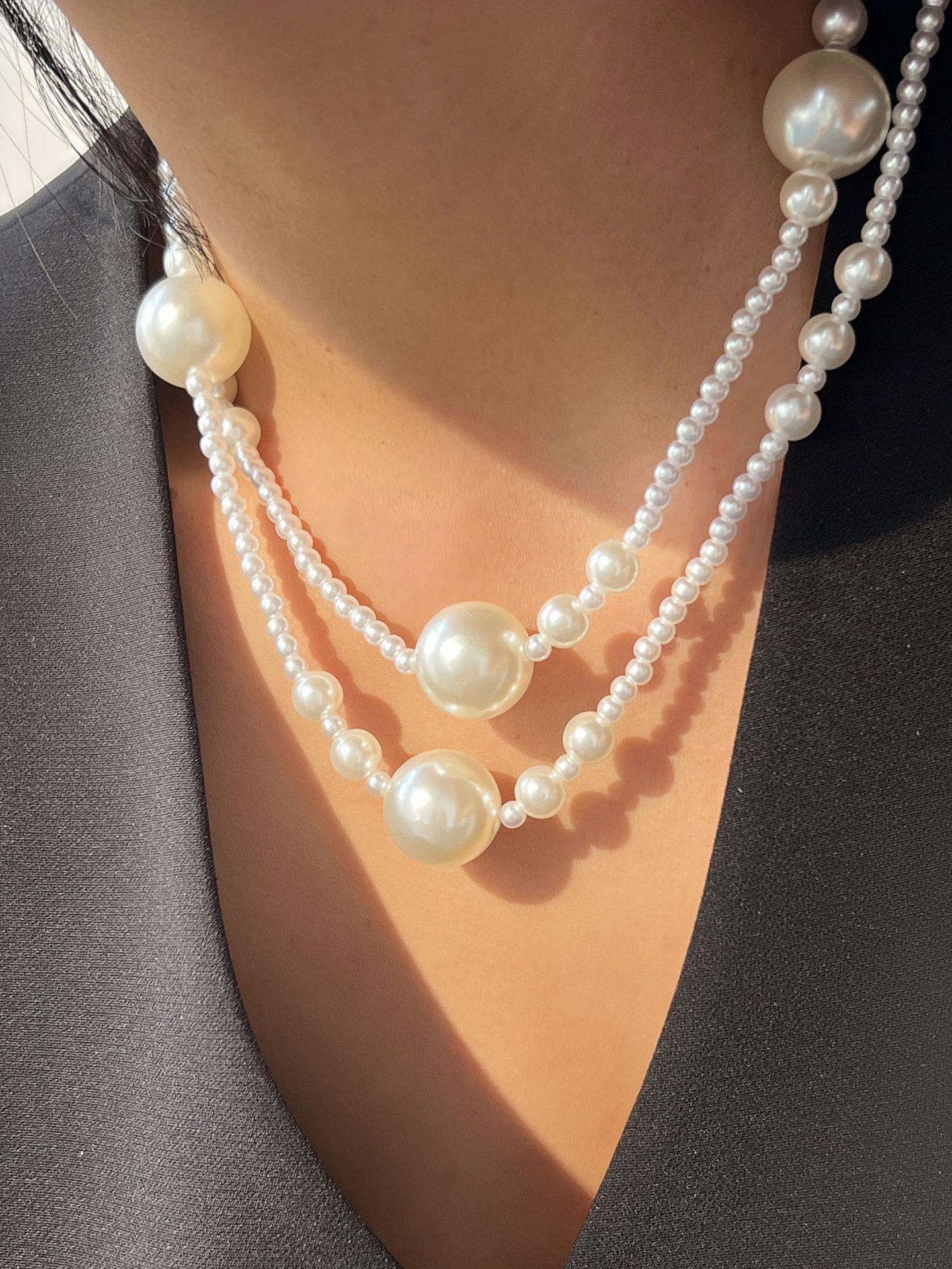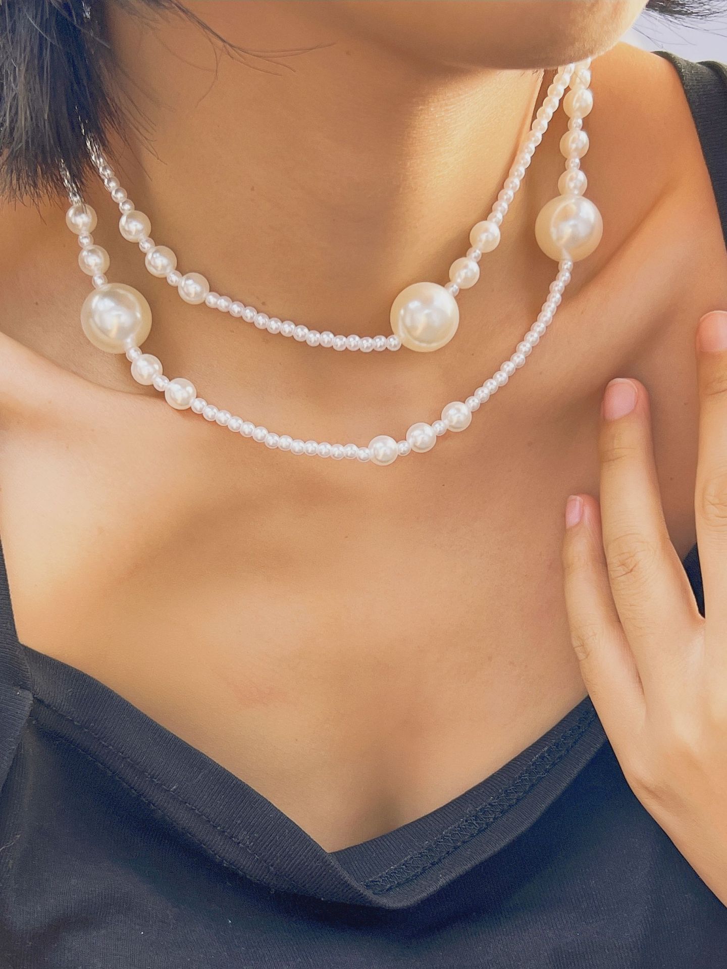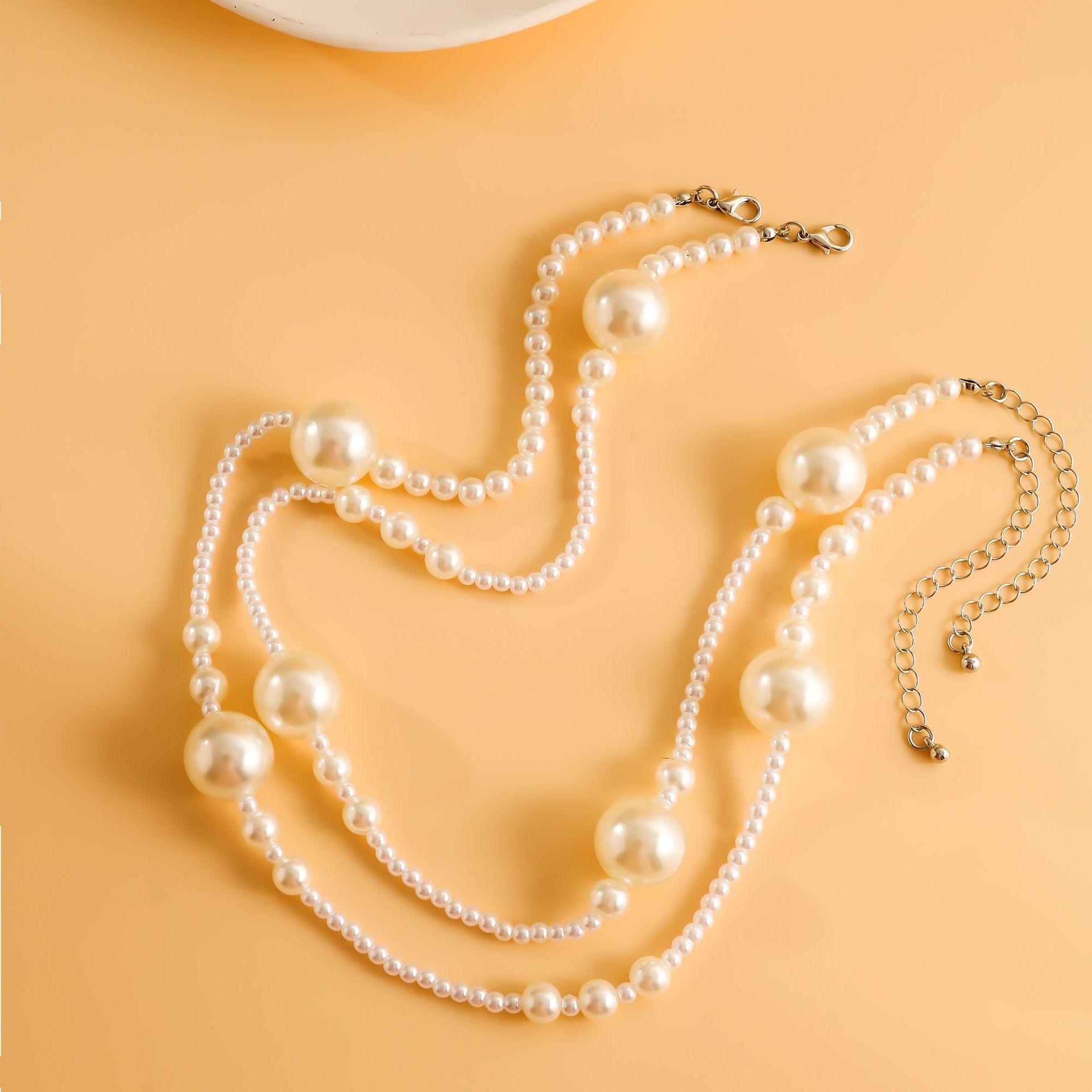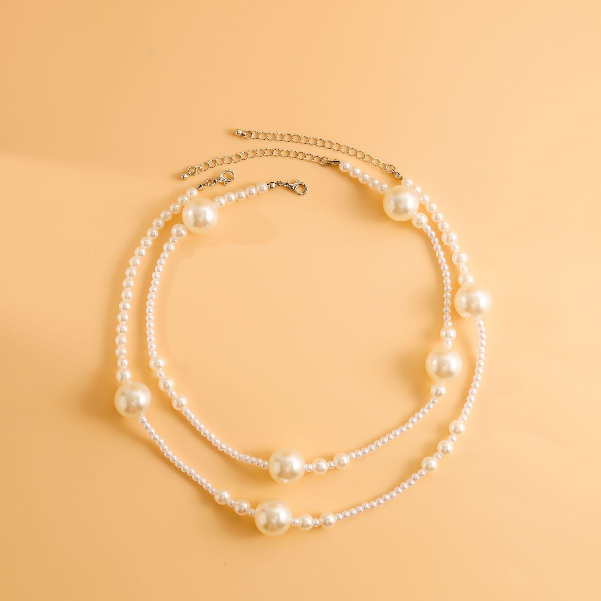 Jóias transfronteiriças europeias e americanas exageradas de dupla camada Pérola temperamento gargantilha all-match clavícula cadeia personalizada colar frisado para mulheres