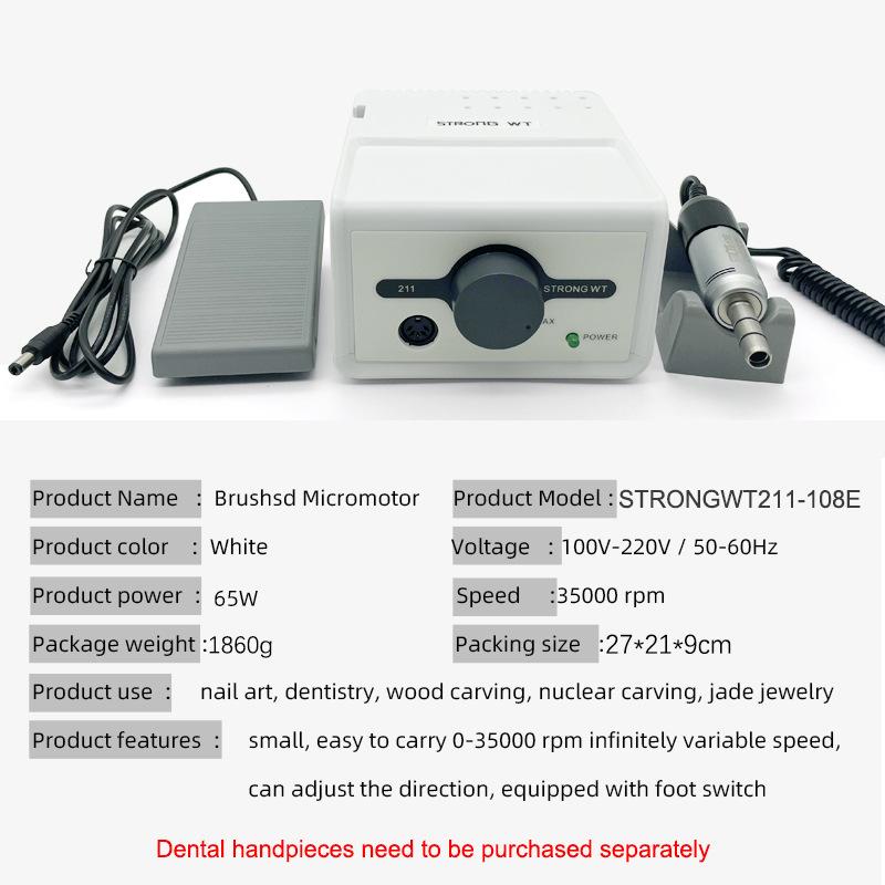 StrongWT211 Máquina de lixamento odontológico Remoção de pés de moagem Remoção de arte em unhas Polimento de pele morta Ferramenta odontológica com cabo eletrônico