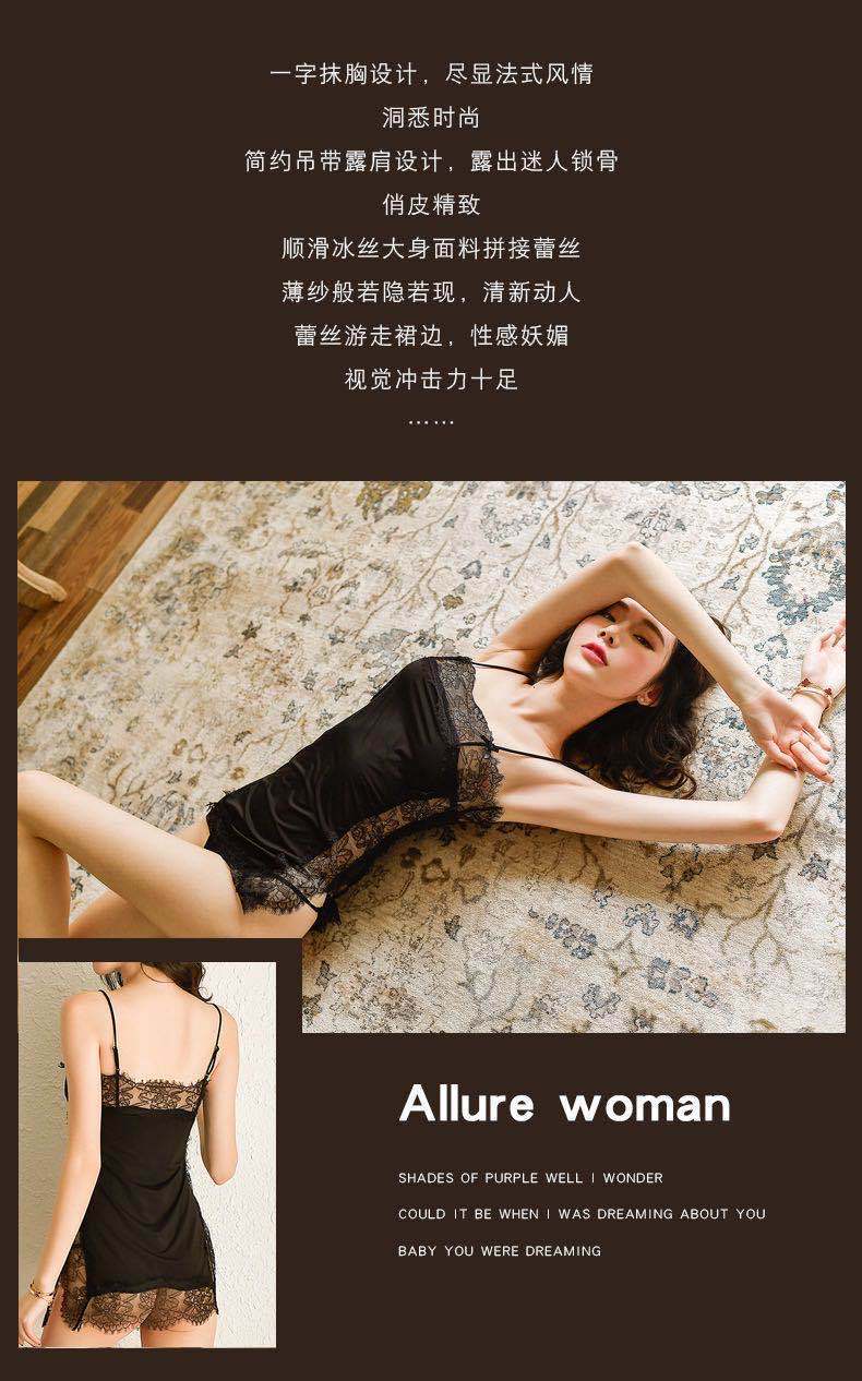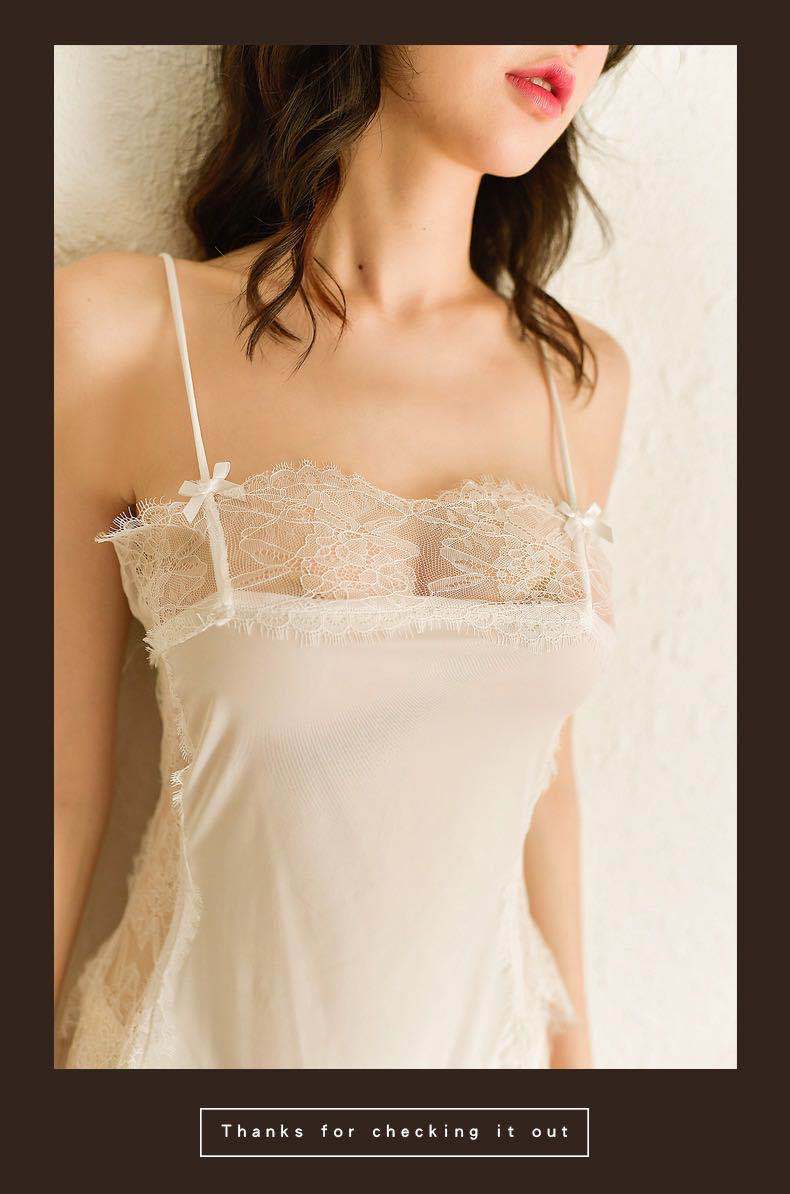 Noite Dourada Lingerie Sexy Lace Sem Encosto Cinta Camisola Tentação Split Paixão Pijamas Gelo Seda Roupas para Casa