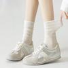 Meias Femininas de Verão Finas de Cano Médio Cor Sólida Enroladas Respiráveis Desodorantes de Algodão Meias Primavera e Outono Antiderrapantes Meias da Moda