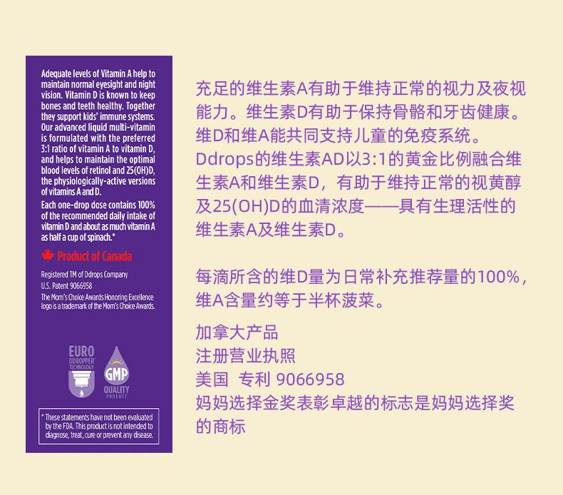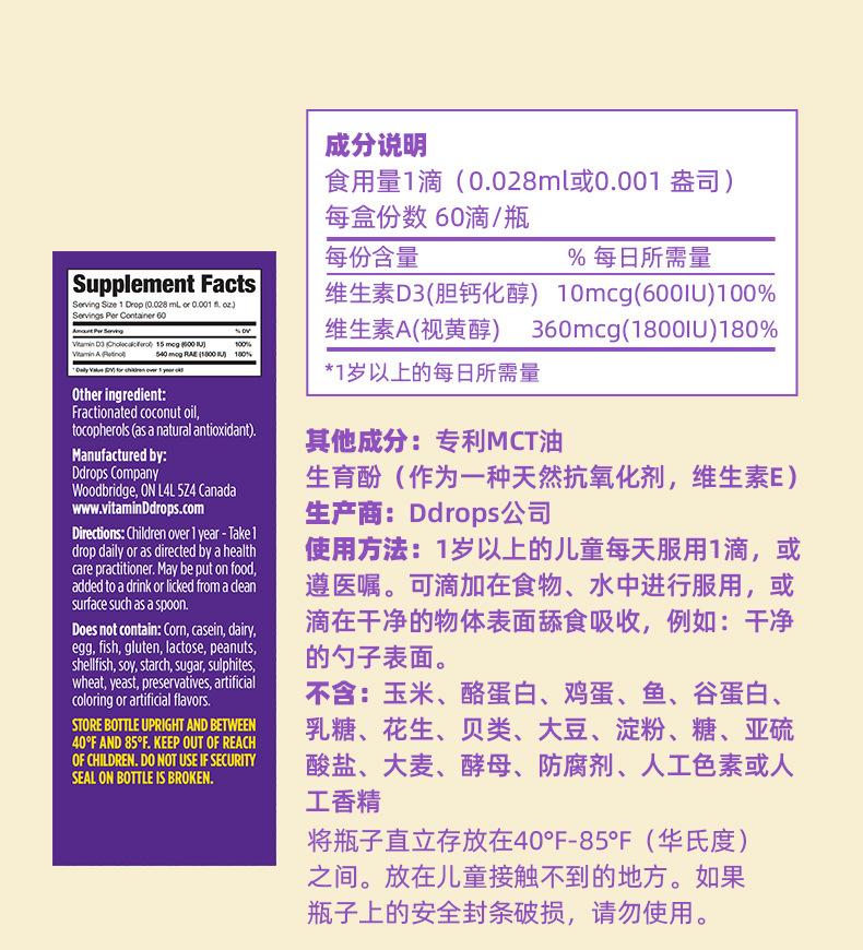 US Ddrops Purple AD A600iu D1800iu 1.7ml