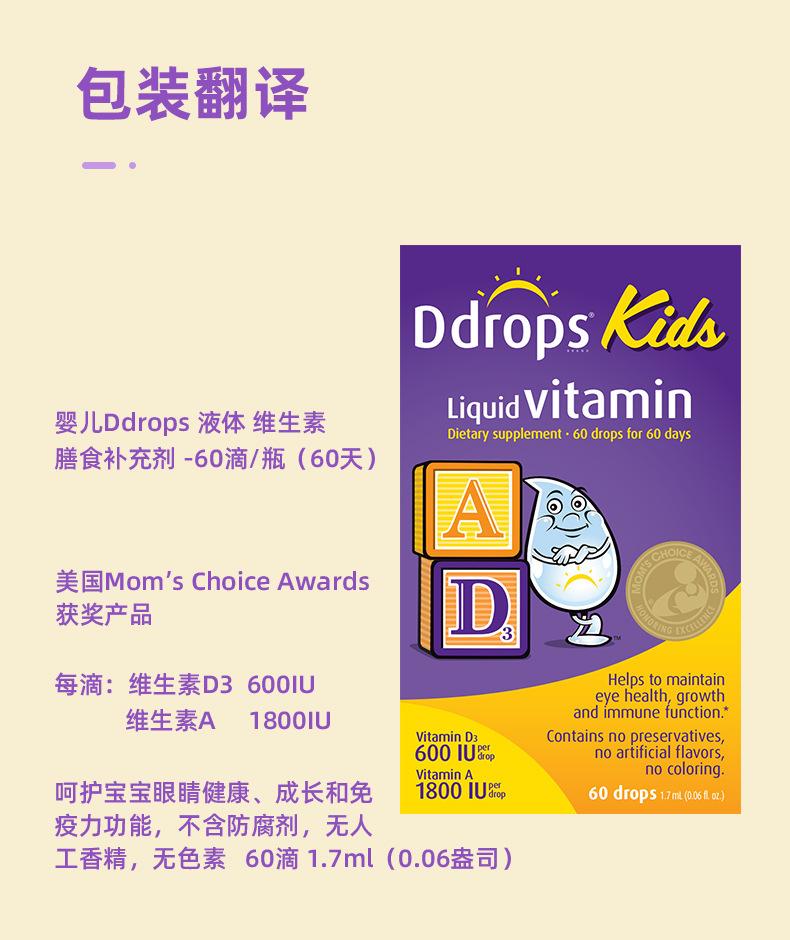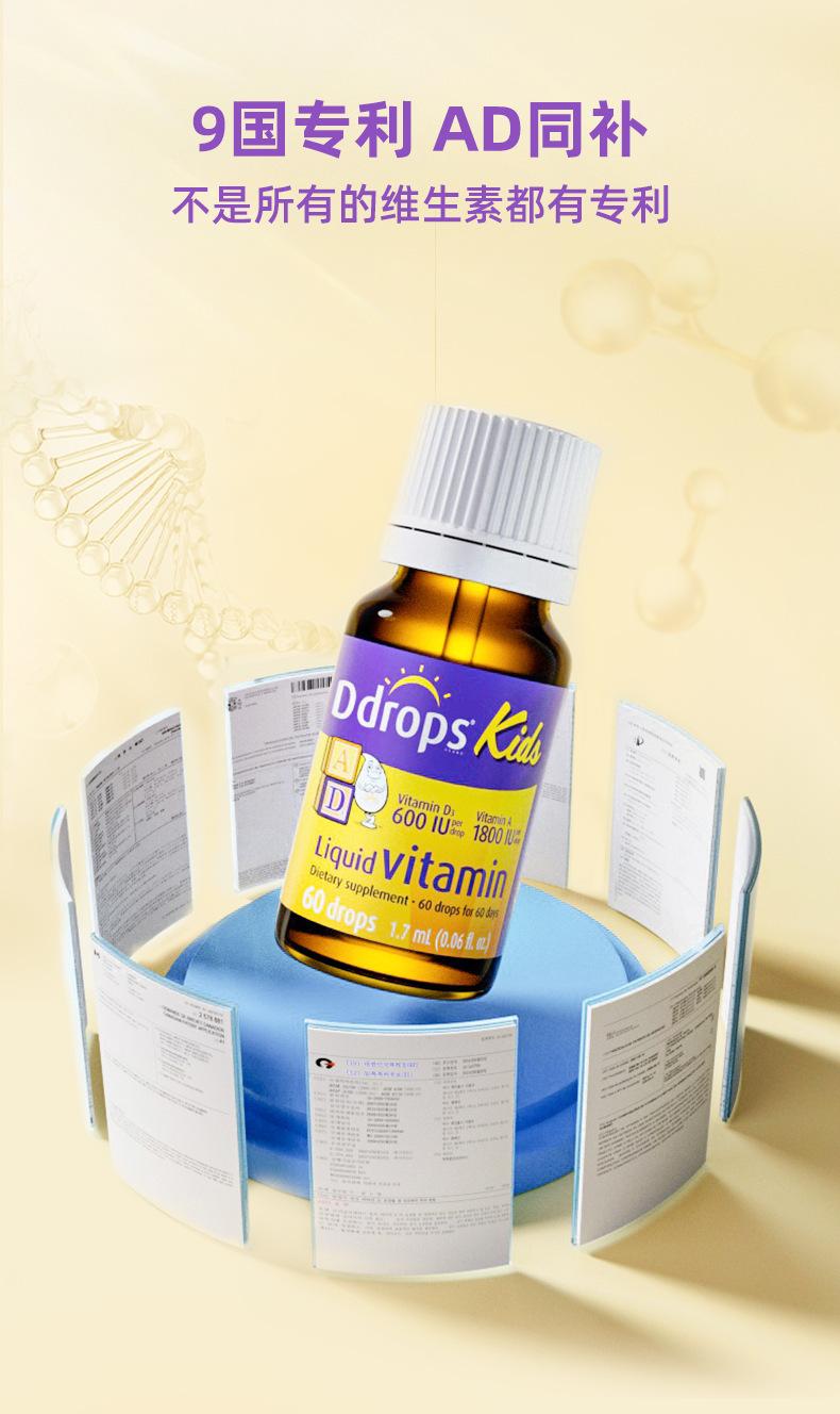Ddrops Drops Zhuosi Compound Vitamin AD Drops Promoção de Cálcio 1-18 Anos de Idade DD Drop Bottle 1.7ml 600IU