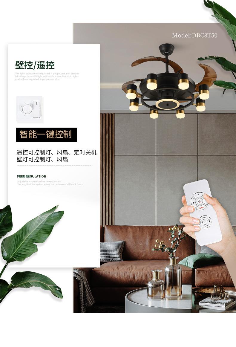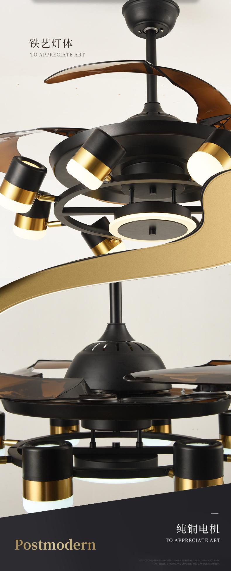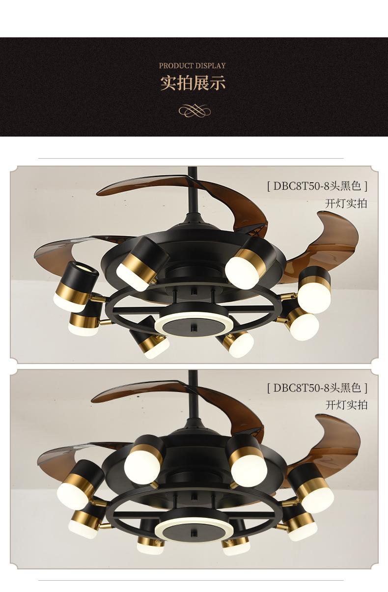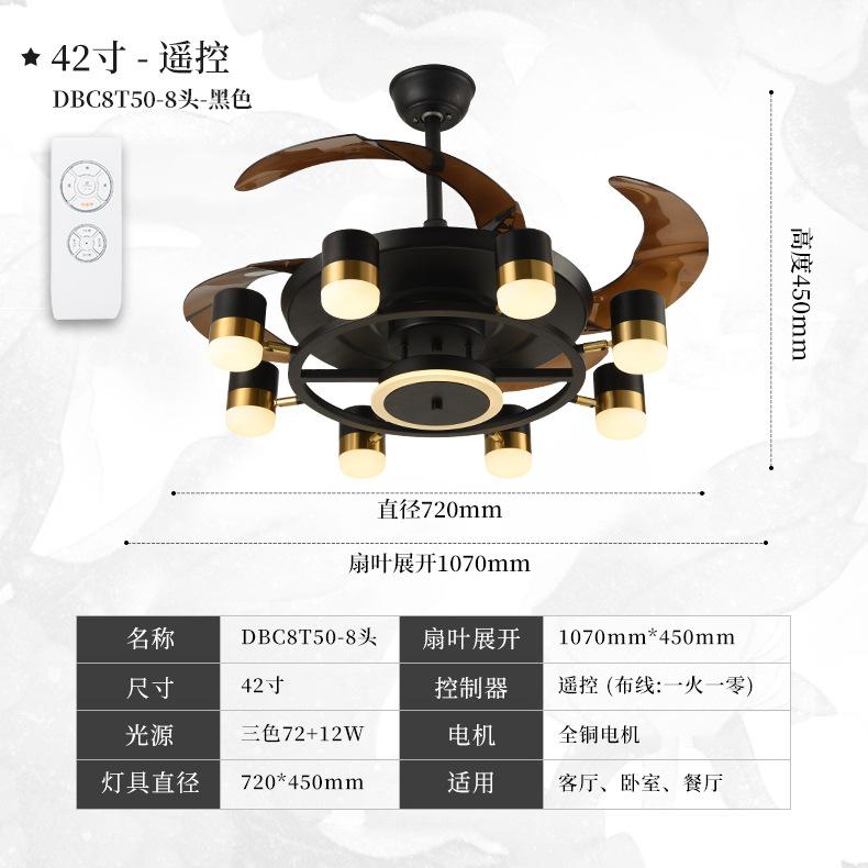 Luz de ventilador sala de estar 8 cabeças preto controle remoto controle duplo simples formato especial sala de jantar luz de ventilador de teto montada suavemente fonte de luz LED integrada