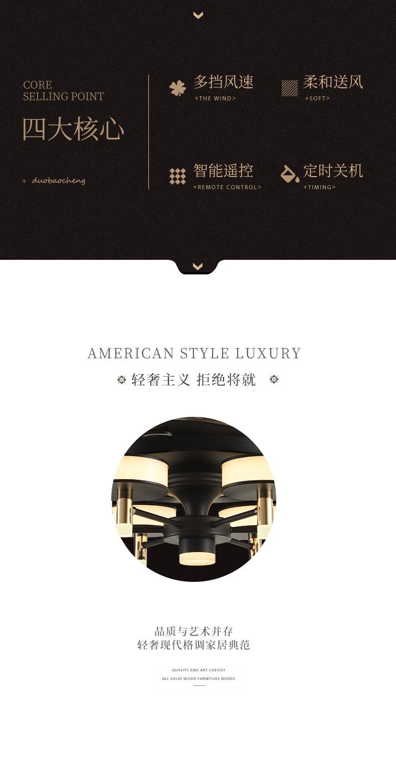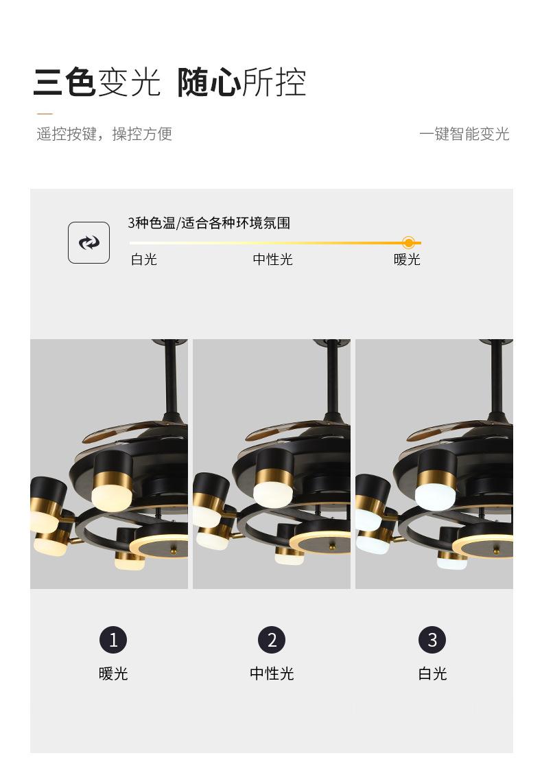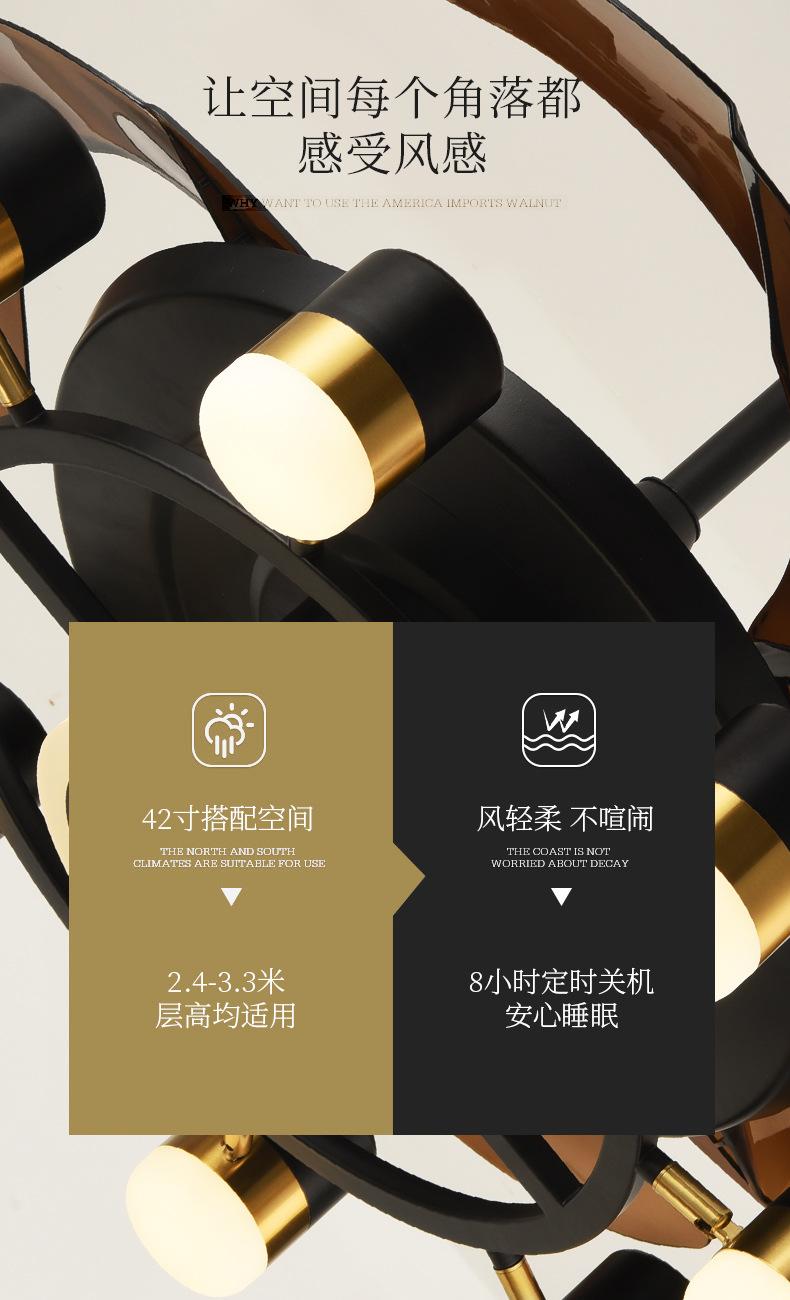 Luz de ventilador sala de estar 8 cabeças preto controle remoto controle duplo simples formato especial sala de jantar luz de ventilador de teto montada suavemente fonte de luz LED integrada