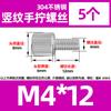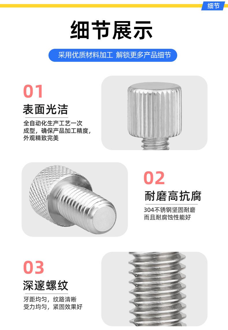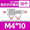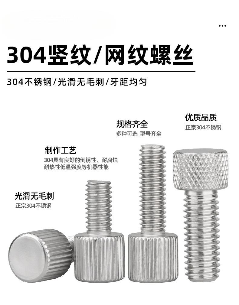 304 Aço Inoxidável Cabeça Única Redonda Padrão Vertical Parafuso Manual Recartilhado Pequeno Parafuso de Cabeça Alta Parafuso de Cabeça Chata M3M4M5M6