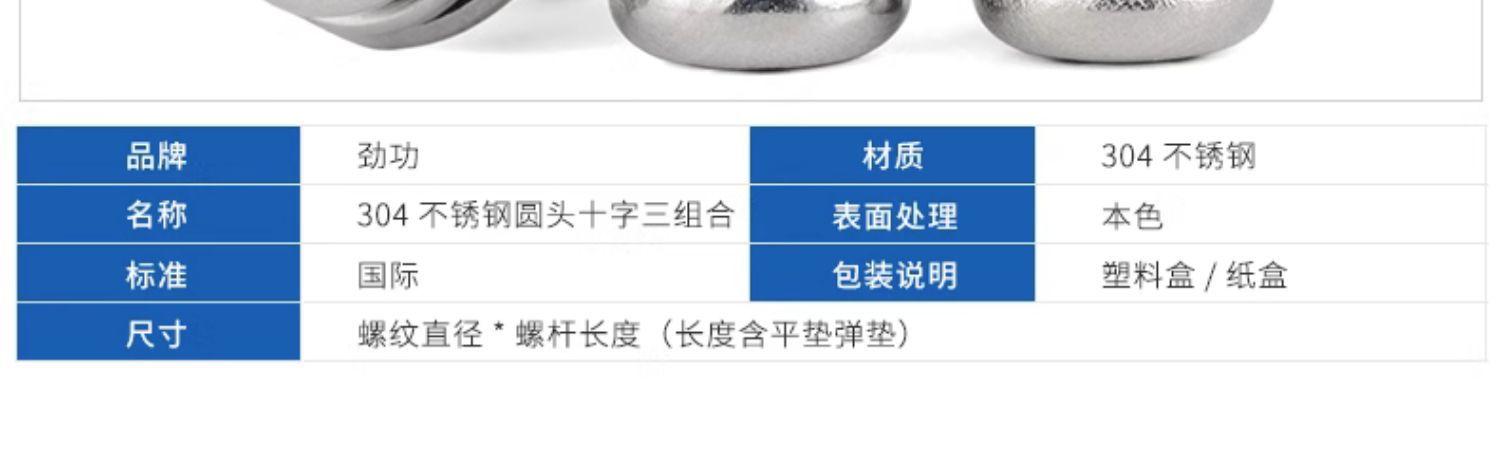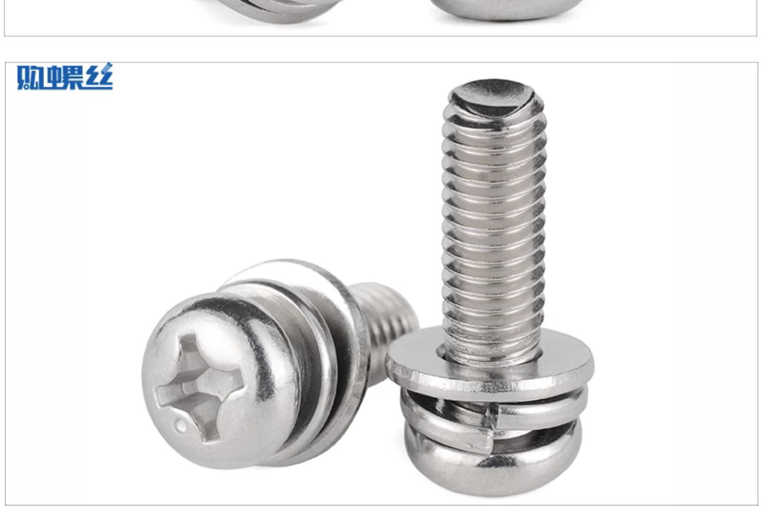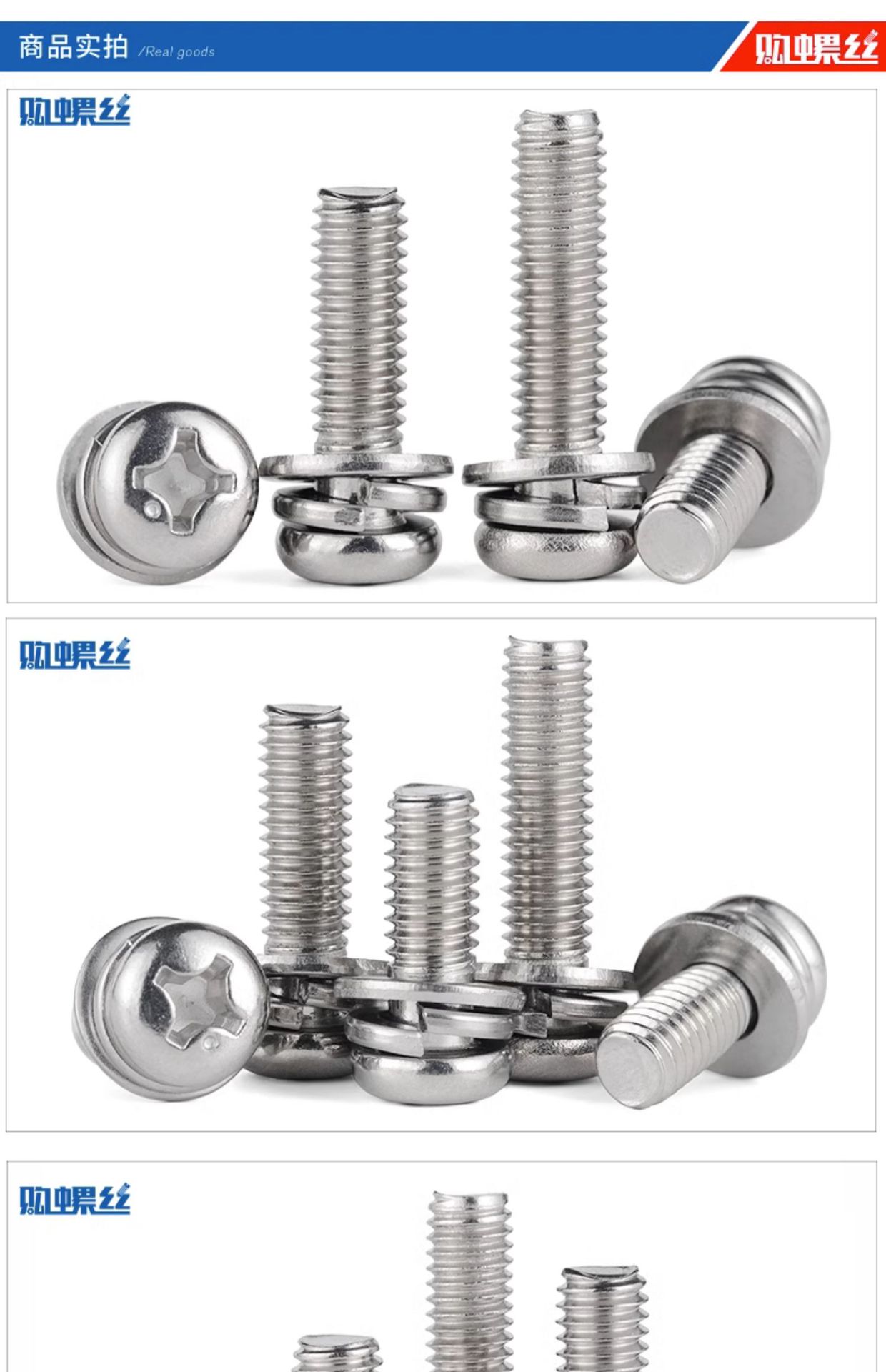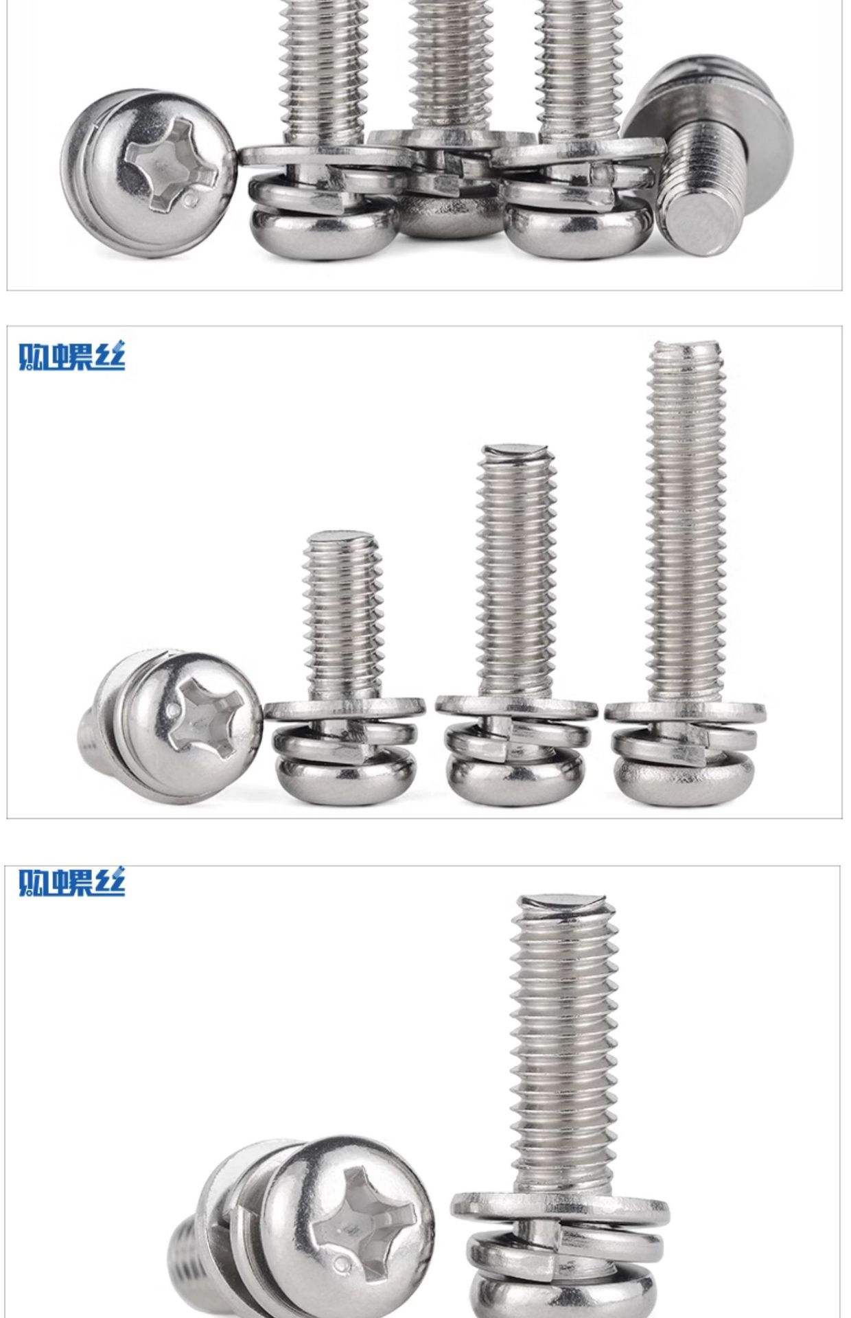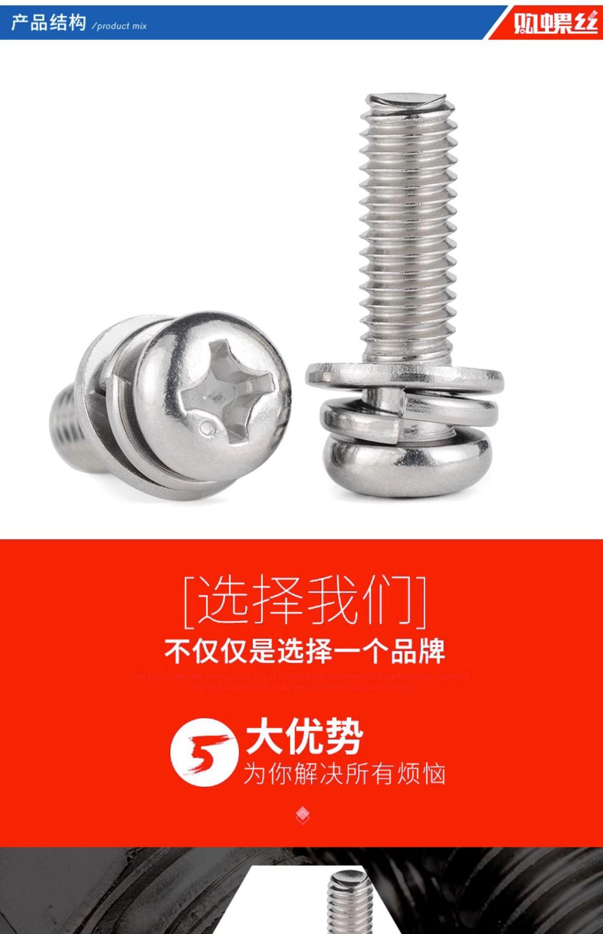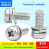 304 cabeça redonda de aço inoxidável três combinação parafuso cruz pan cabeça com almofada parafuso de combinação m2.5m3m4m5m6