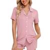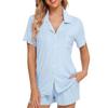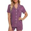 Pijama modal Amazon transfronteiriço feminino de verão, novo, lapela, manga curta, shorts, roupa de casa, fábrica