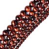 Contas redondas de pedra olho de tigre vermelho natural, contas soltas de pedra olho de tigre semiacabadas, contas de pedra olho de tigre, tira longa, contas de pedra de madeira faça você mesmo, contas combinando