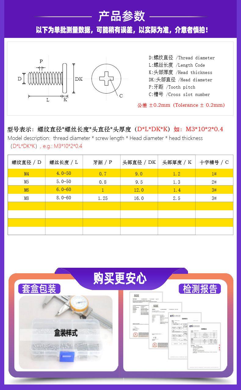 304 aço inoxidável fino cabeça chata parafuso de máquina cruz recesso grande parafuso de cabeça redonda plana CM precisão eletrônico pequeno parafuso M4-M8