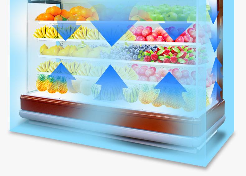 Armário de cortina de ar Armário de conservação de frutas e legumes Supermercado Frutas Bebidas Comercial Refrigerador Loja de conveniência Armário de exposição refrigerado