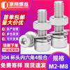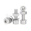 Aço Inoxidável 304 Cabeça Cilíndrica Sextavada Parafuso Porca 4 Combinação Cabeça Copo Sextavado Parafuso Arruela de Pressão Plana Conjunto de Porcas