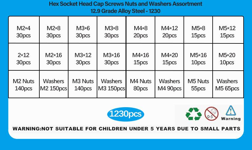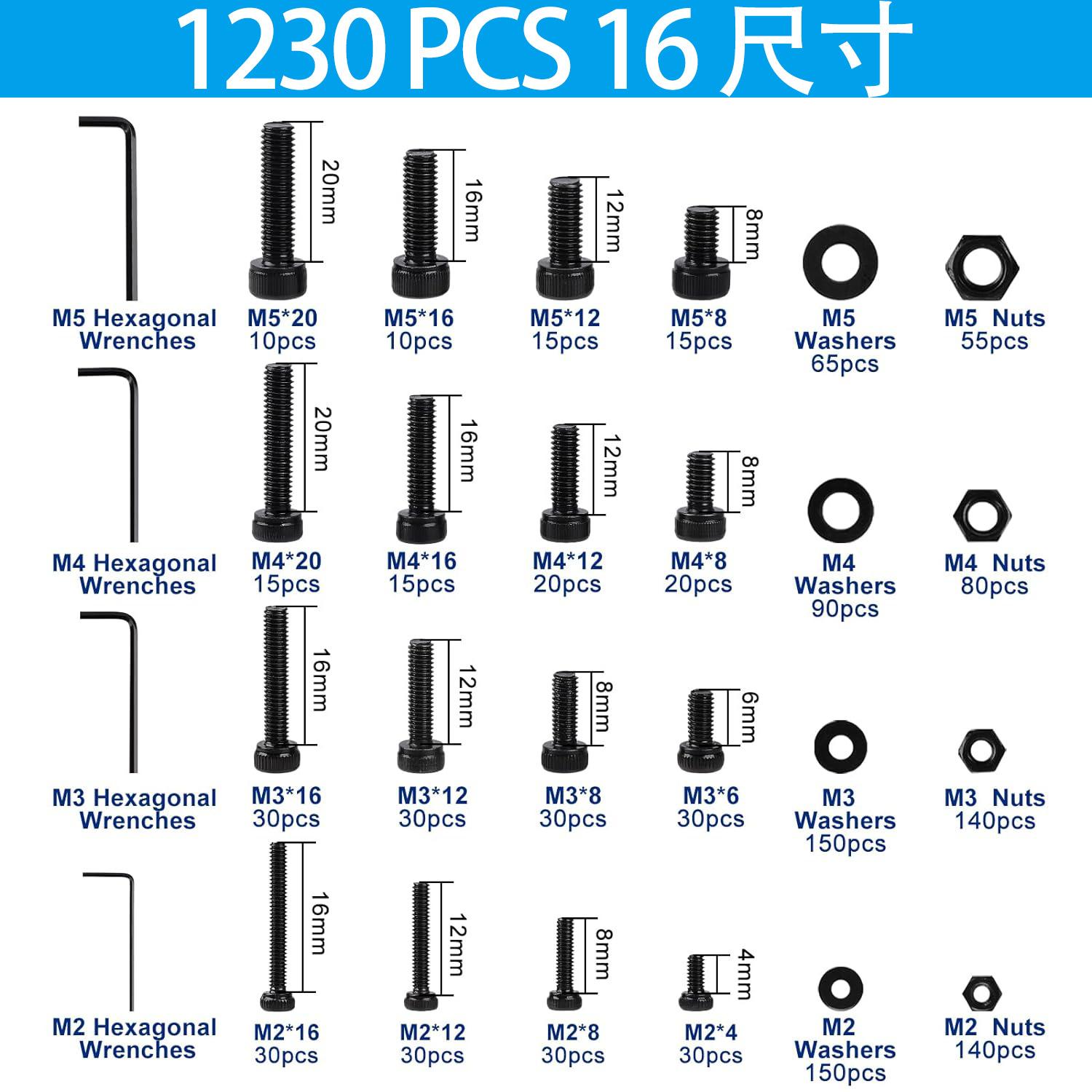 1230 pcs de alta resistência 12.9 grau preto M2M3M4M5 cabeça do copo hexágono soquete parafuso porca plana almofada terno