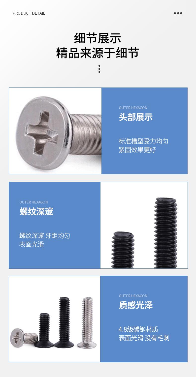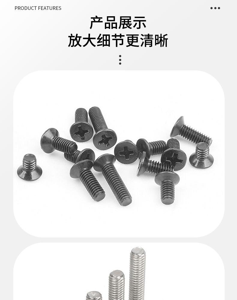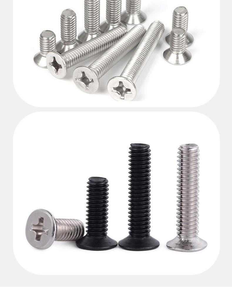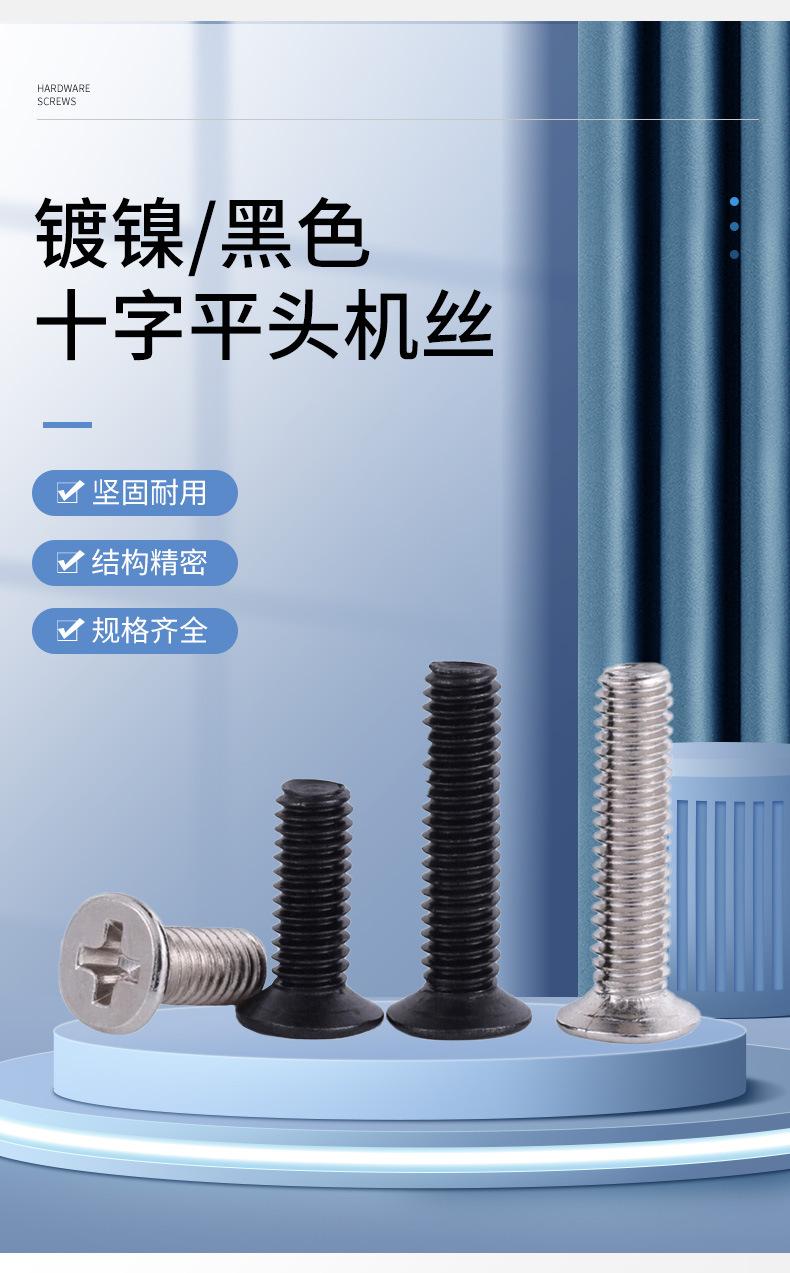 Aço carbono grau 4,8 KM niquelado cruz escareada cabeça pequena parafuso M2-M4 preto zinco cruz cabeça chata máquina dente parafuso de ferro